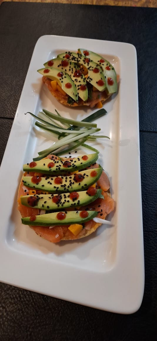 Riquisimas tostadas de Salmón fresco con aguacate (2 Tostadas)
