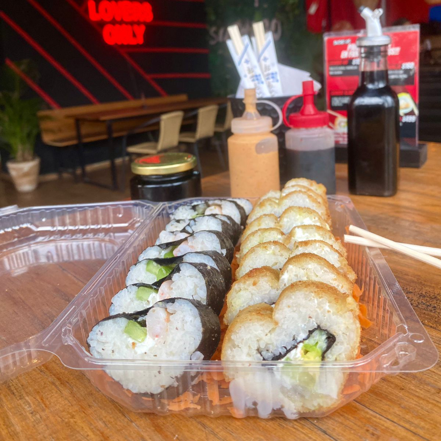 1 Sushi en forma de corazón,puedes elegir tu favorito empanizado o california +Agua Fresca