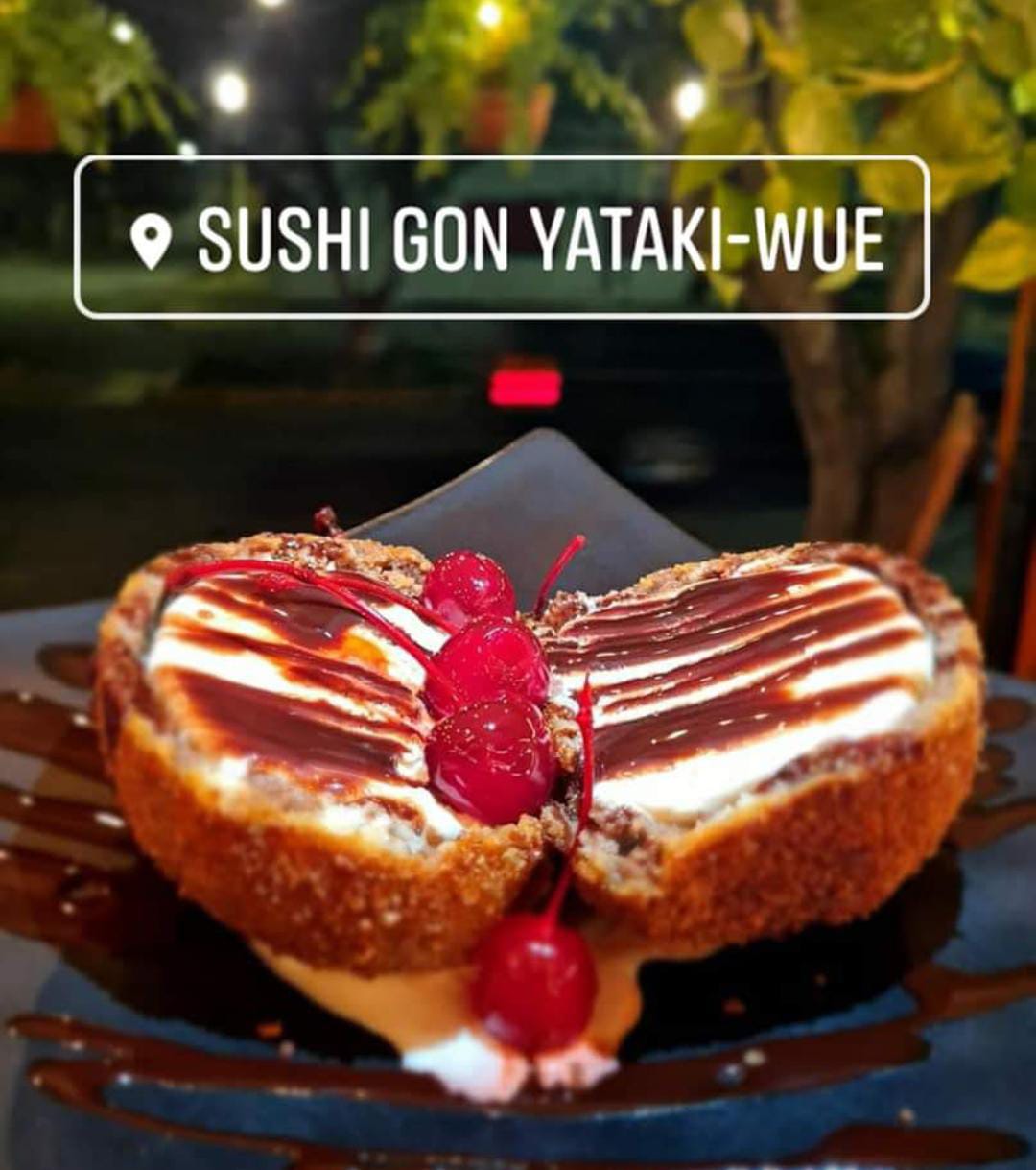 Helado de vainilla tempura frito cubierto con chocolate liquido.