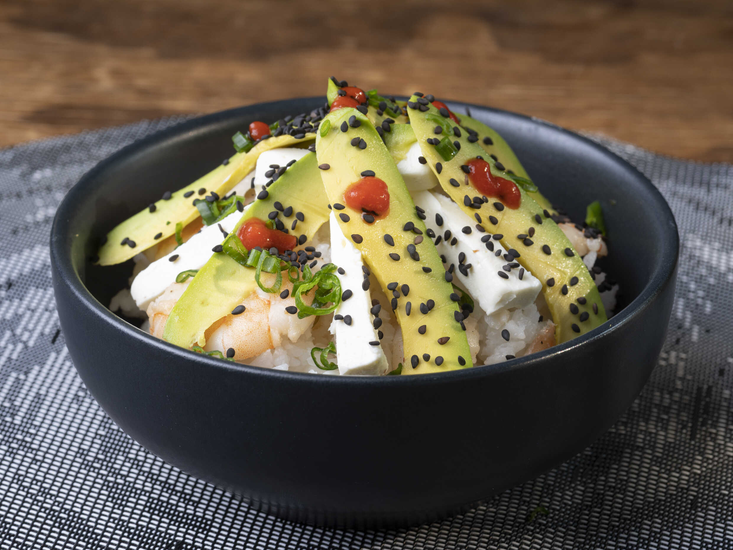 Preparado con aguacate, cebollín, ajonjolí y queso crema.