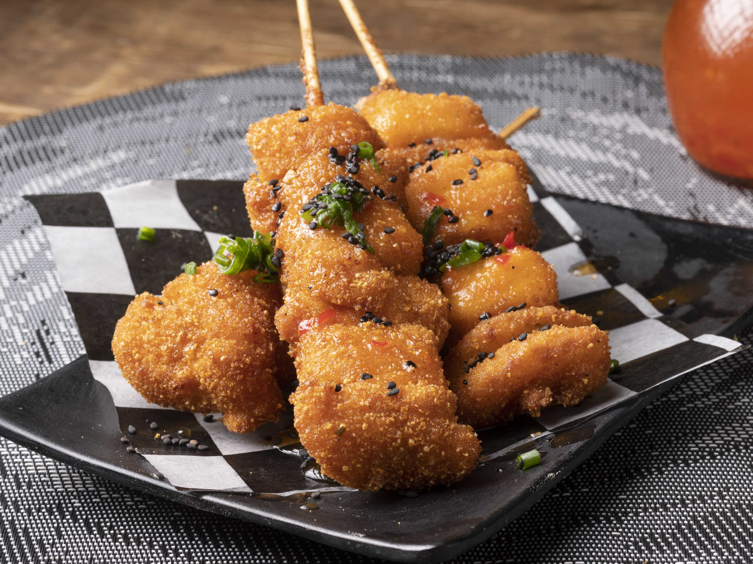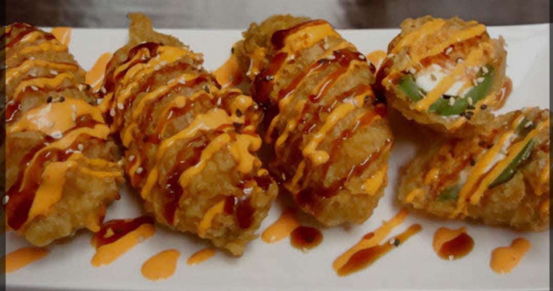 Cubierta de tempura, rellenos con queso crema.