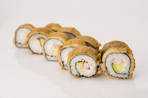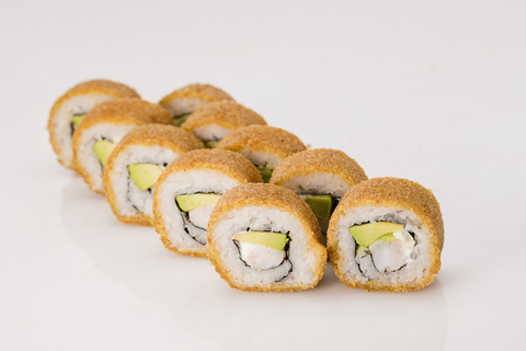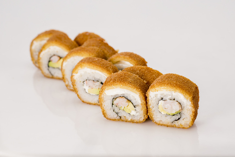 Empanizado con camarón, philadelphia y aguacate por dentro.