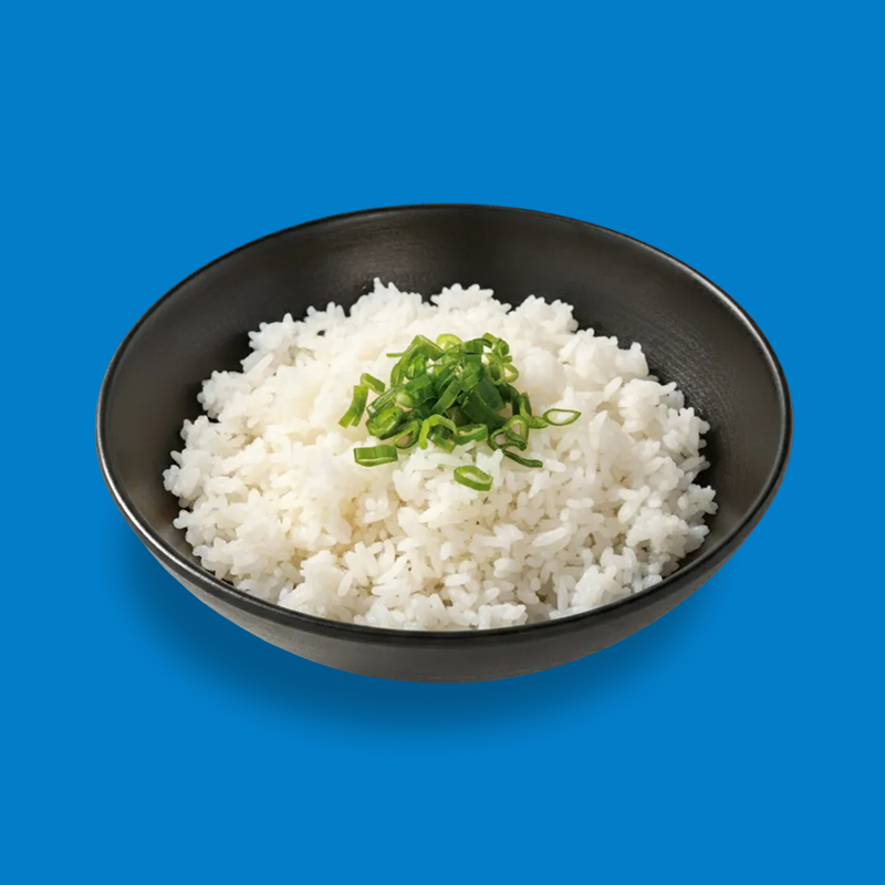 Yakimeshi de verduras acompañado de pollo karaage, servido con cebollín, ajonjolí y salsa especial.