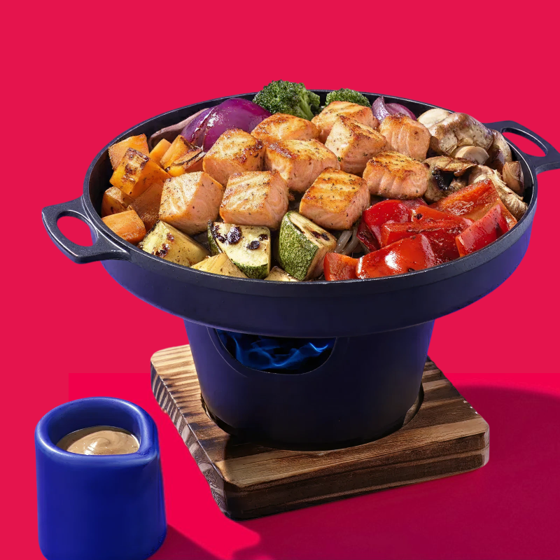 Mezcla de vegetales a la plancha con laminas de Rib Eye (150g). Acompañado de deliciosa salsa de Ajonjolí.