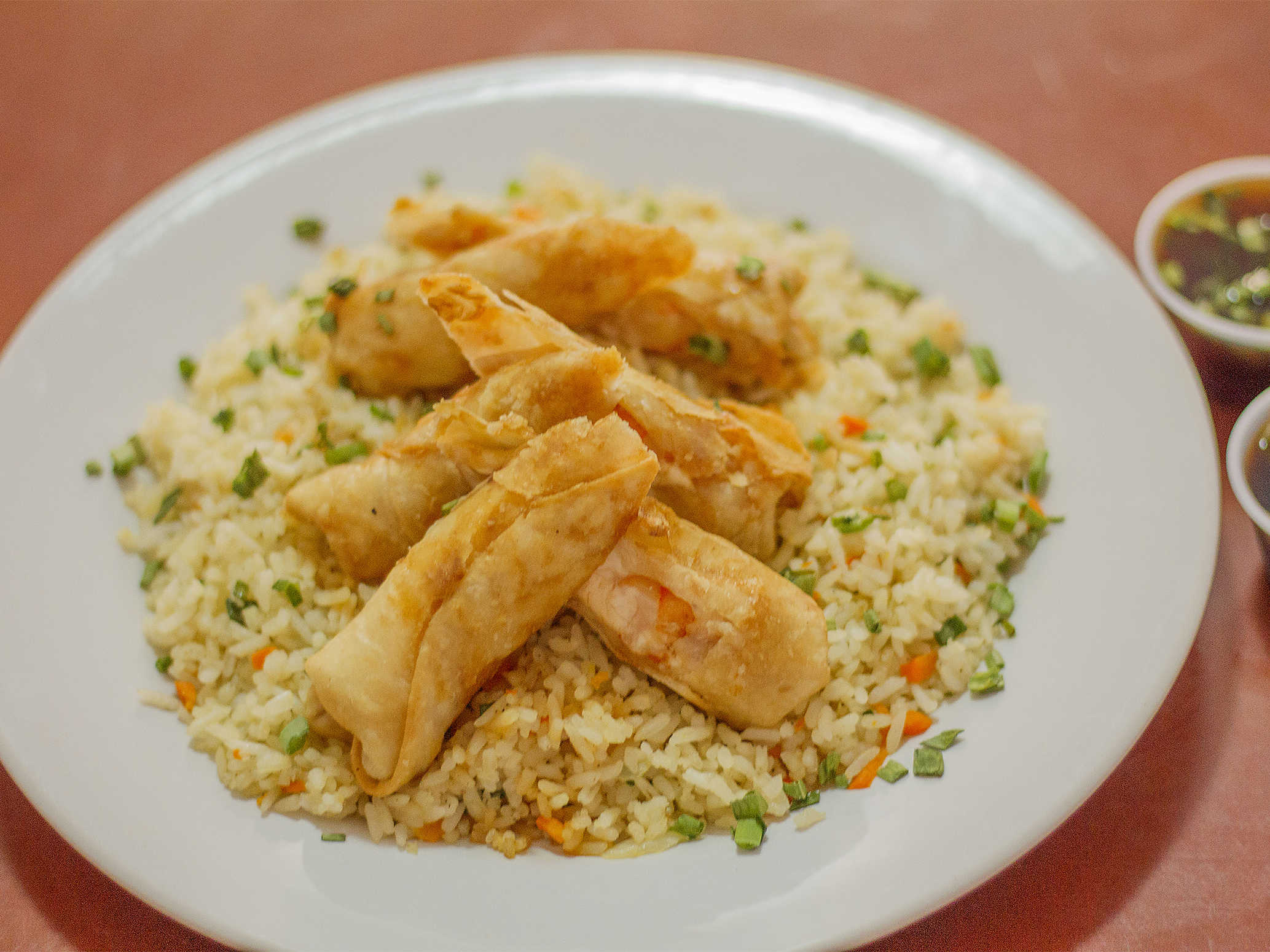 Orden con 3 rollos y arroz frito.