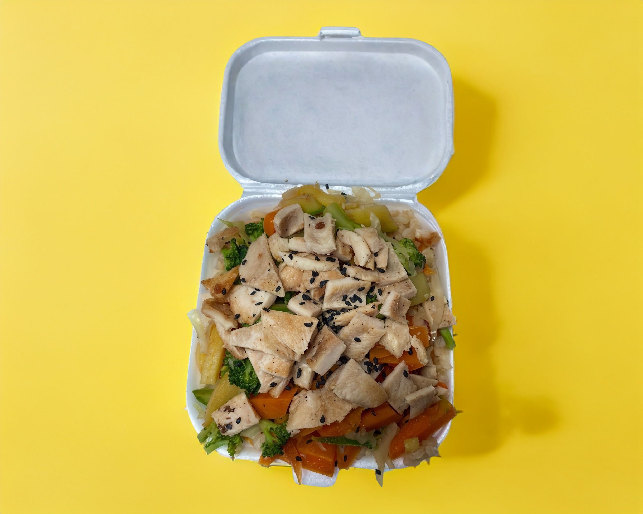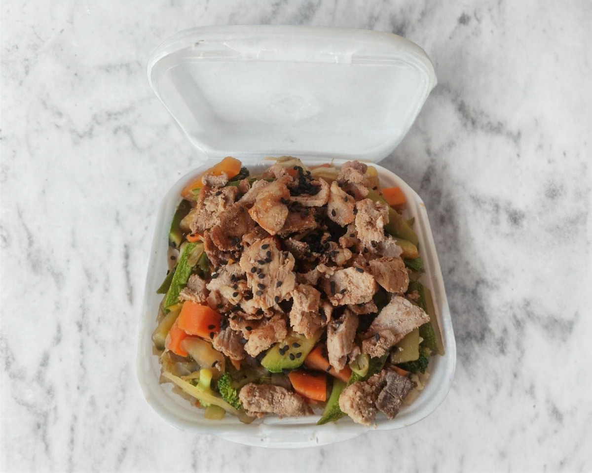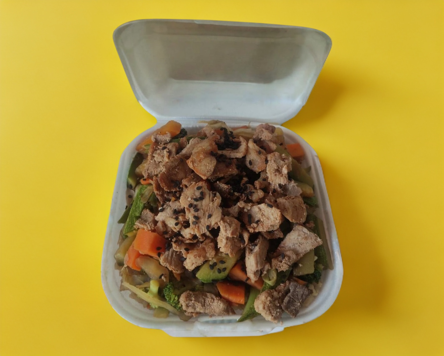 Vegetales, Philadelphia, aguacate, ensalada de surimi y proteína a elección.