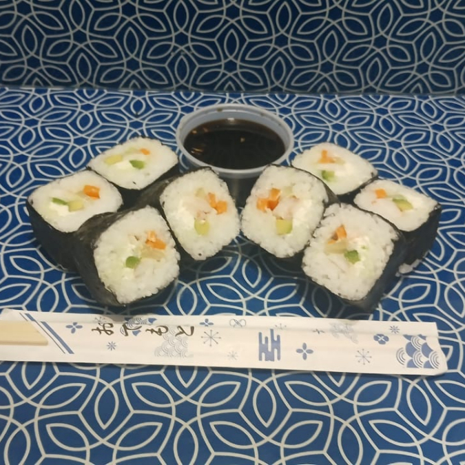 Camarón, aguacate, Philadelphia, pepino y zanahoria