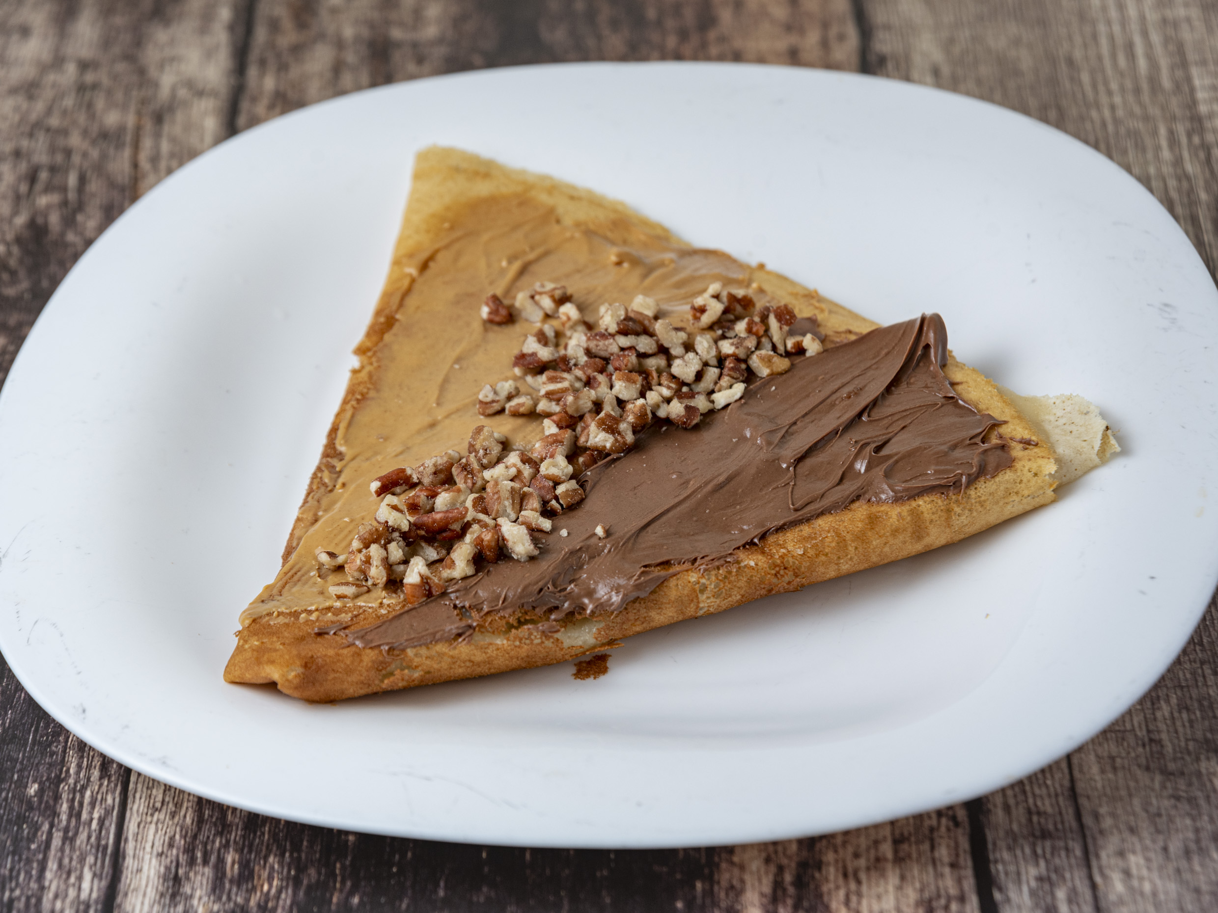 Base de Philadelphia, cajeta, plátano macho y almendra.