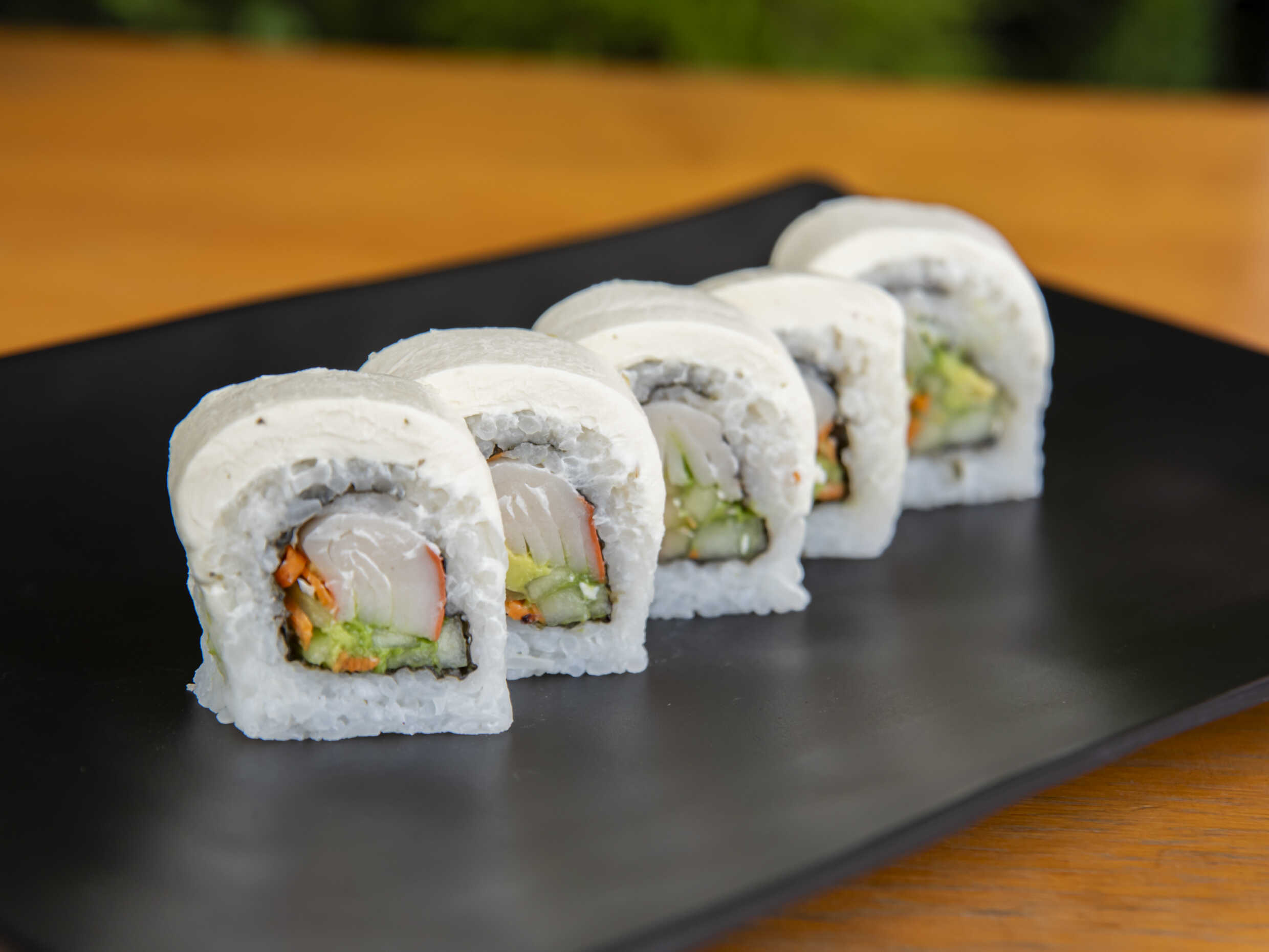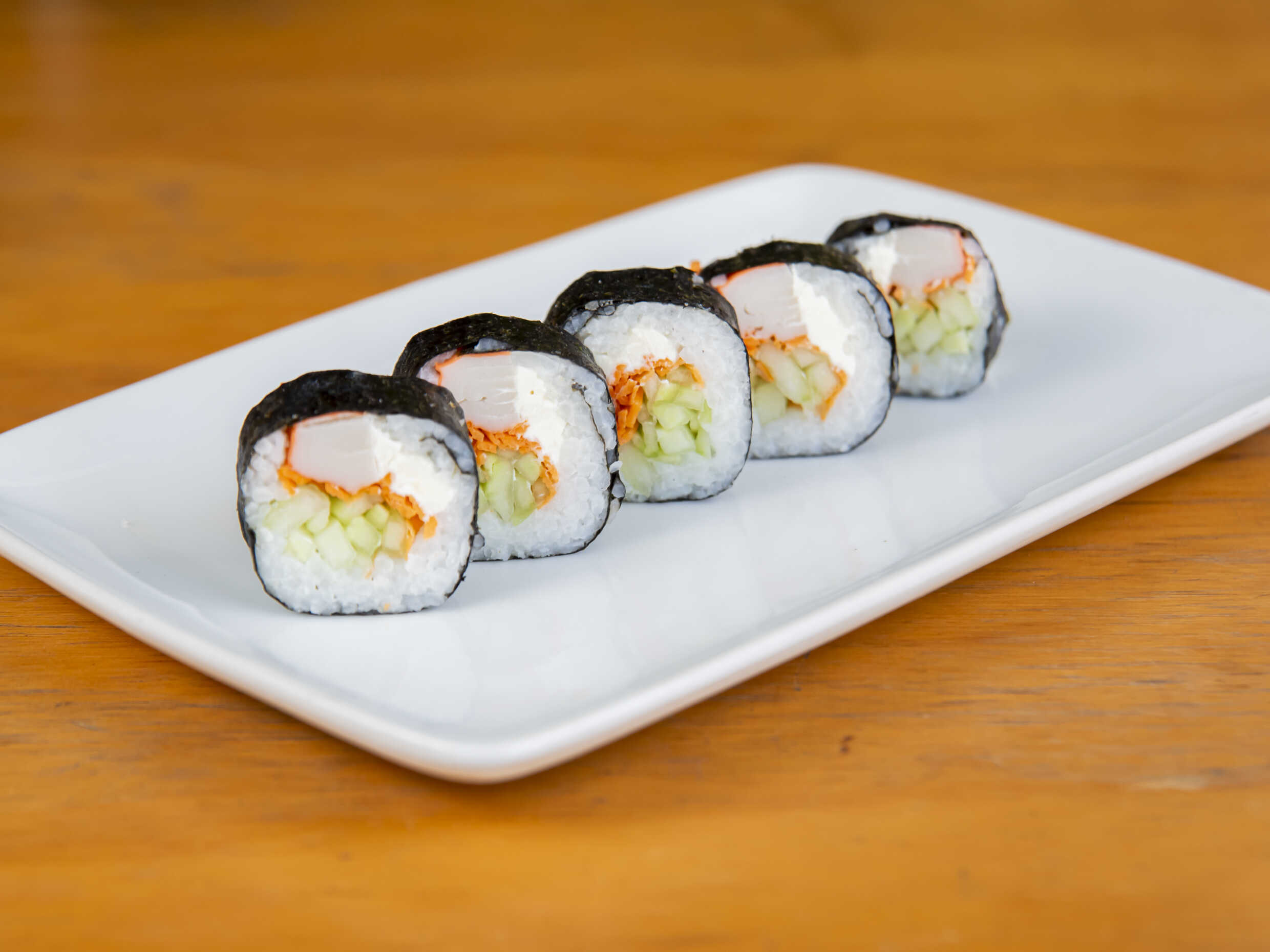 Rollo fresco forrado en philaldelphia con la proteina de tu eleccion y pepino, zanahoria por dentro