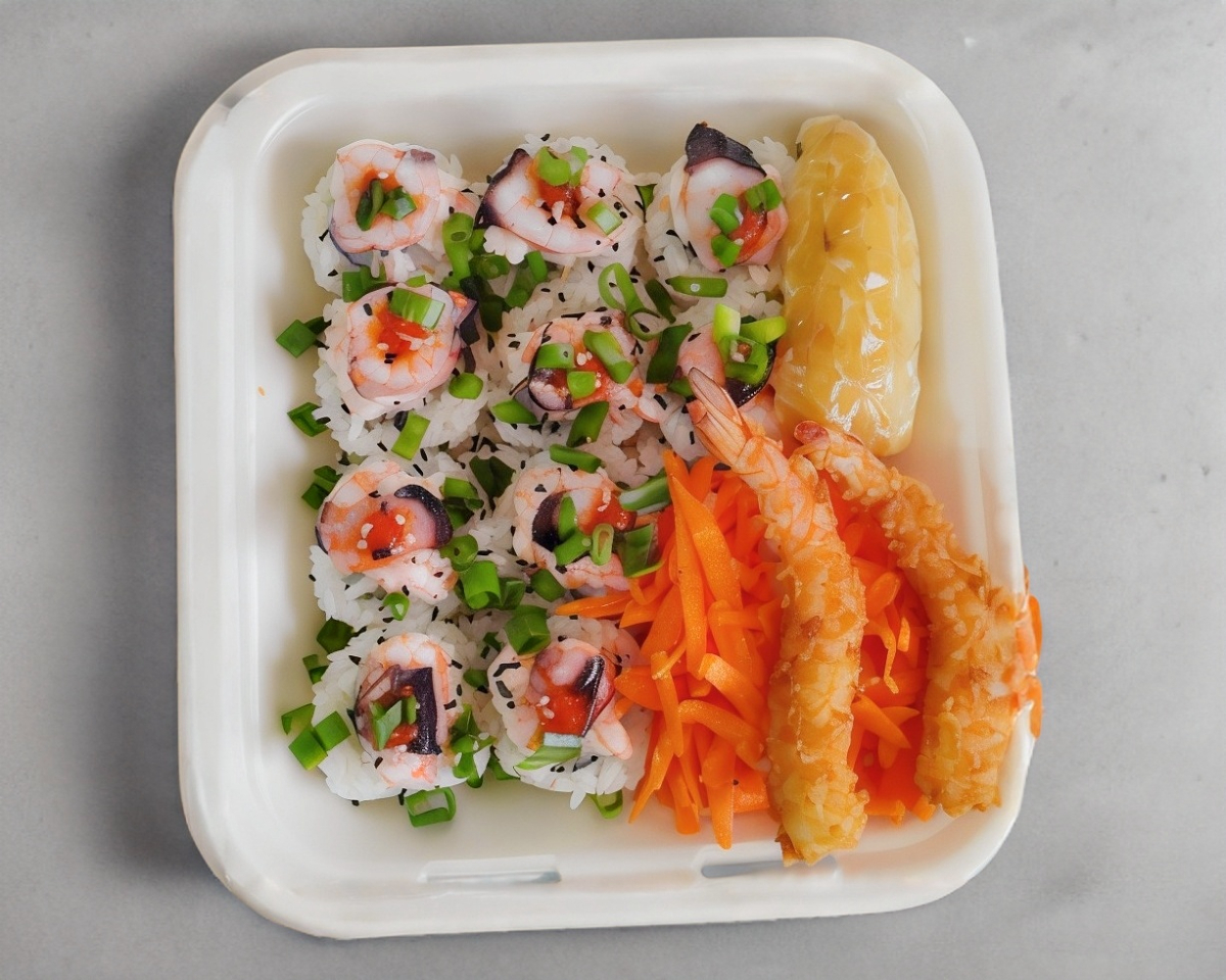 TEPPANYAKI CAMARONES A LA PLANCHA*2 + SUSHI EMPANIZADO*1