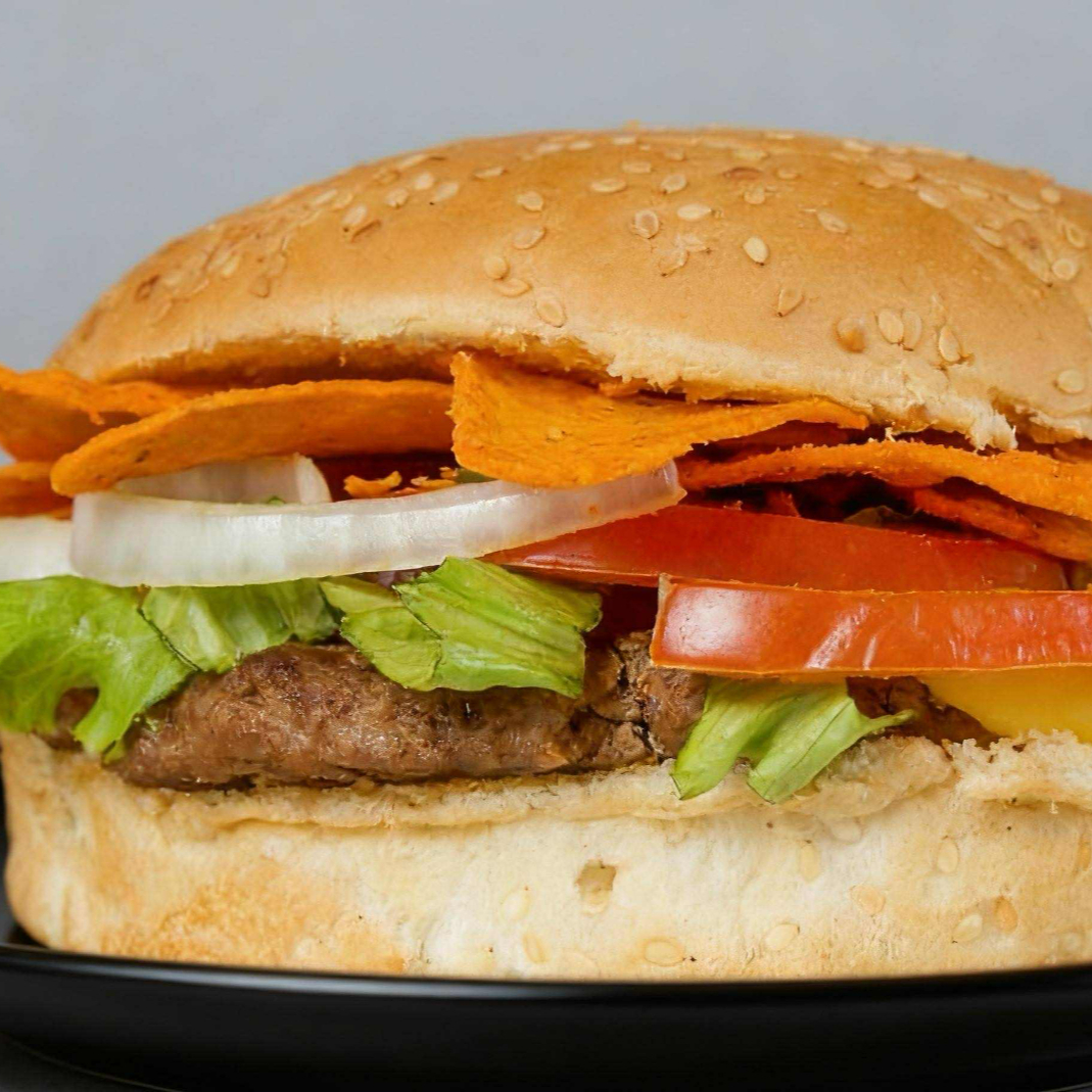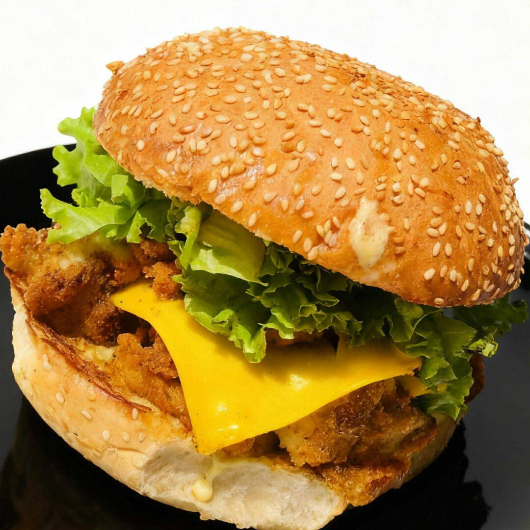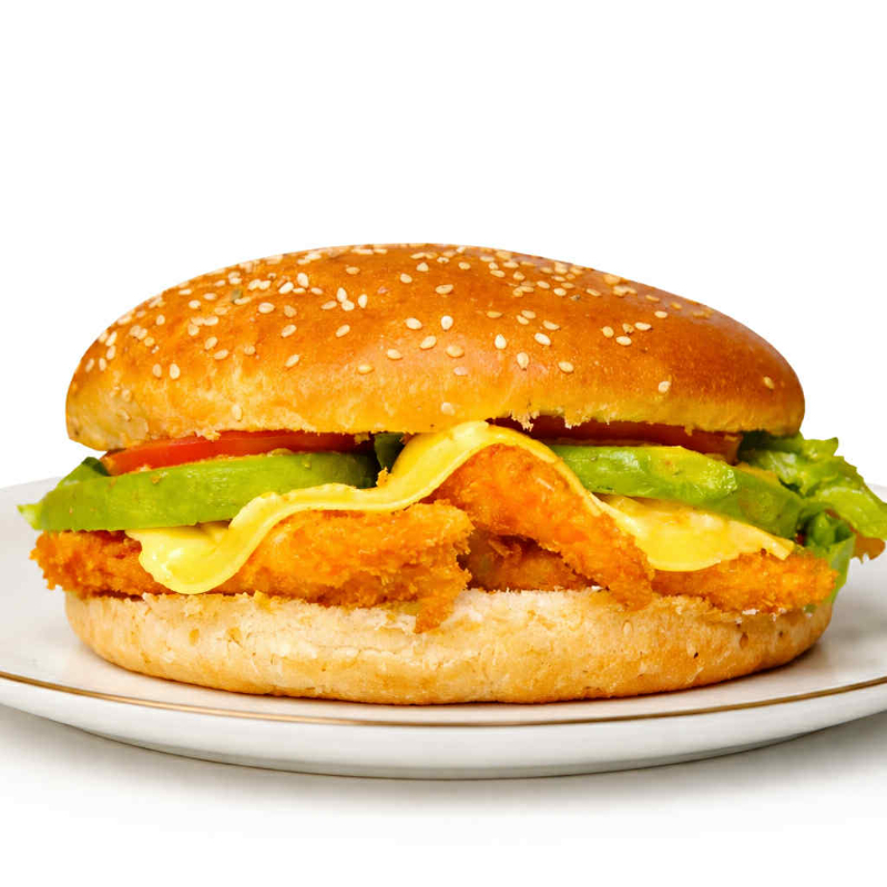 Hamburguesa de pollo empanizado, aguacate y doble queso