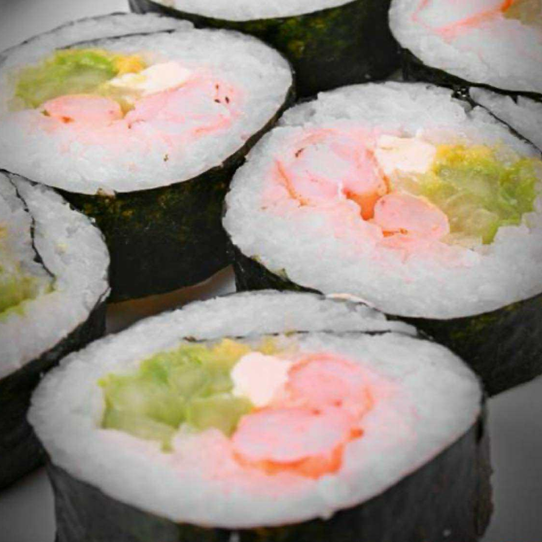 rollo de alga por fuera, por dentro Philadelphia, pepino, aguacate