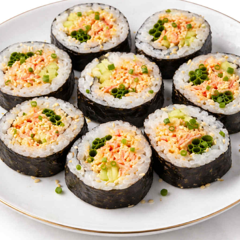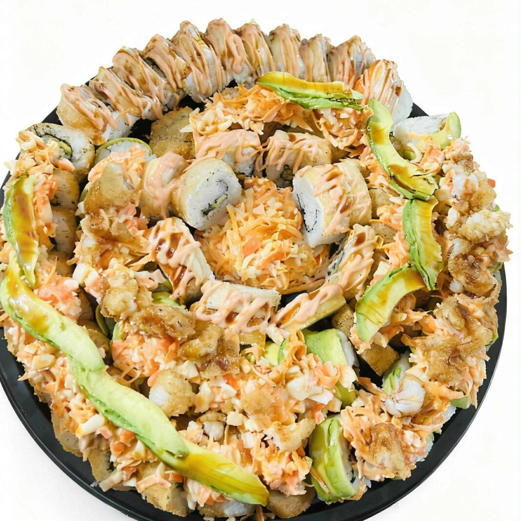 camaron empanizado por dentro, coronado con kanikama y aderezo spicy