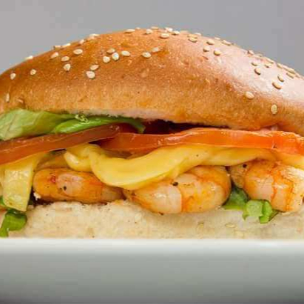 Hamburguesa de camaron empanizado, aguacate y doble queso
