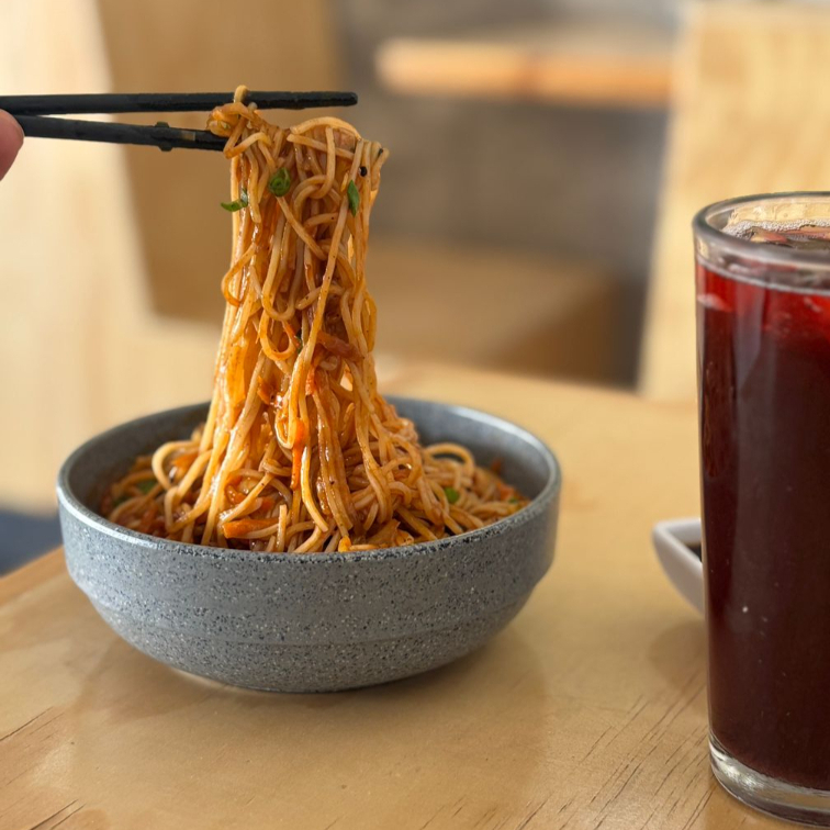 Fideos fritos con proteína de tu elección bañados en una salsa picosa con un toque de limón
