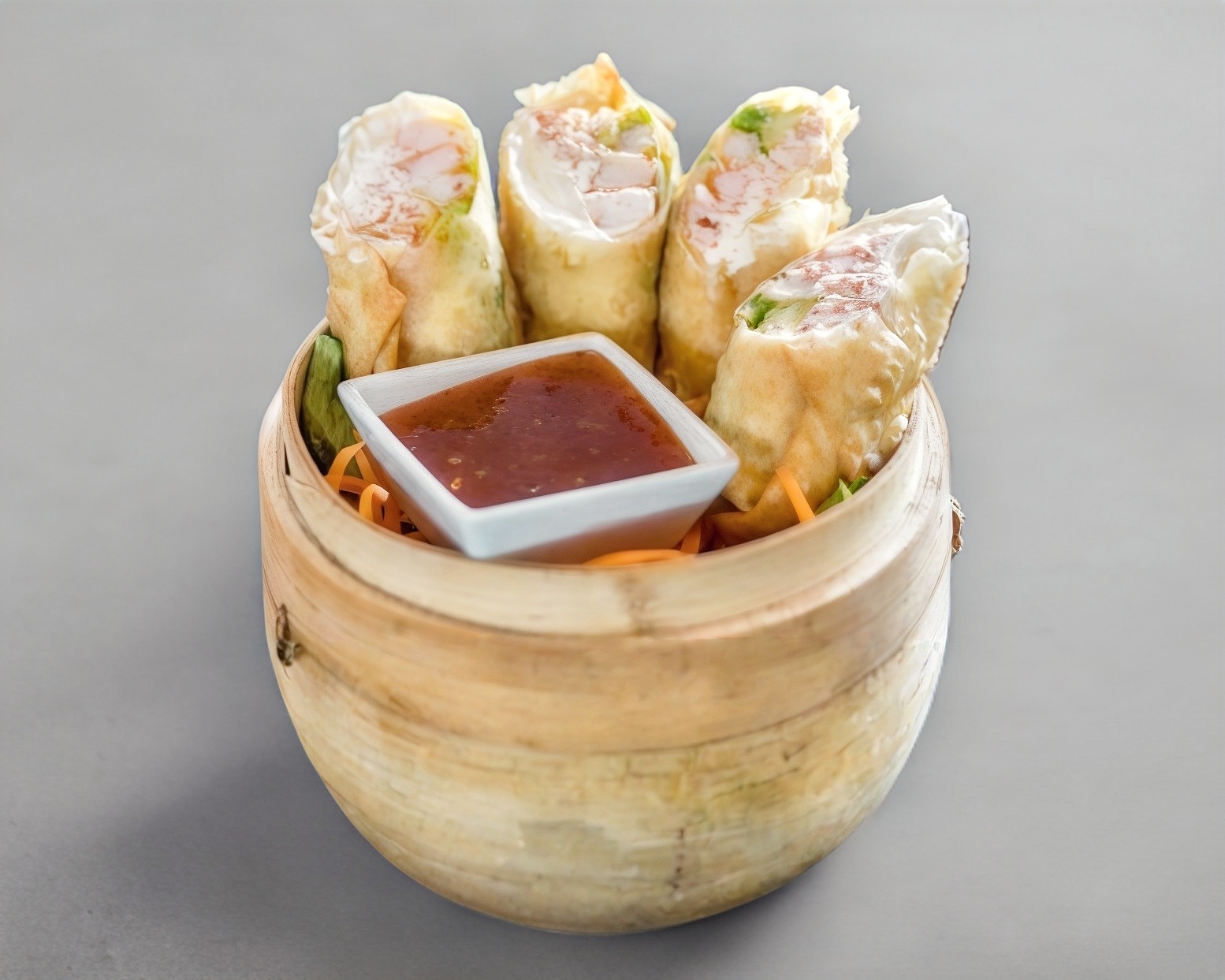 Camarón y Philadelphia enrollados con tortilla de harina.
