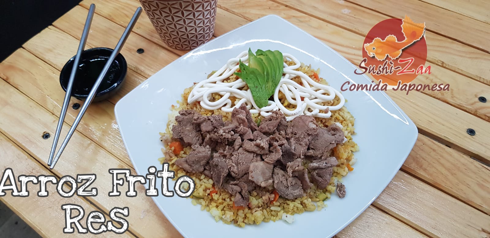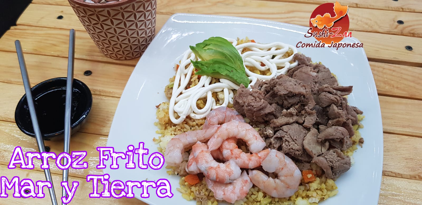 Arroz frito o blanco con arrachera, pollo, camaron, tampico, pulpo, tocino, aguacate y queso crema