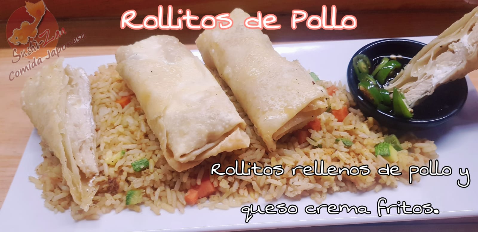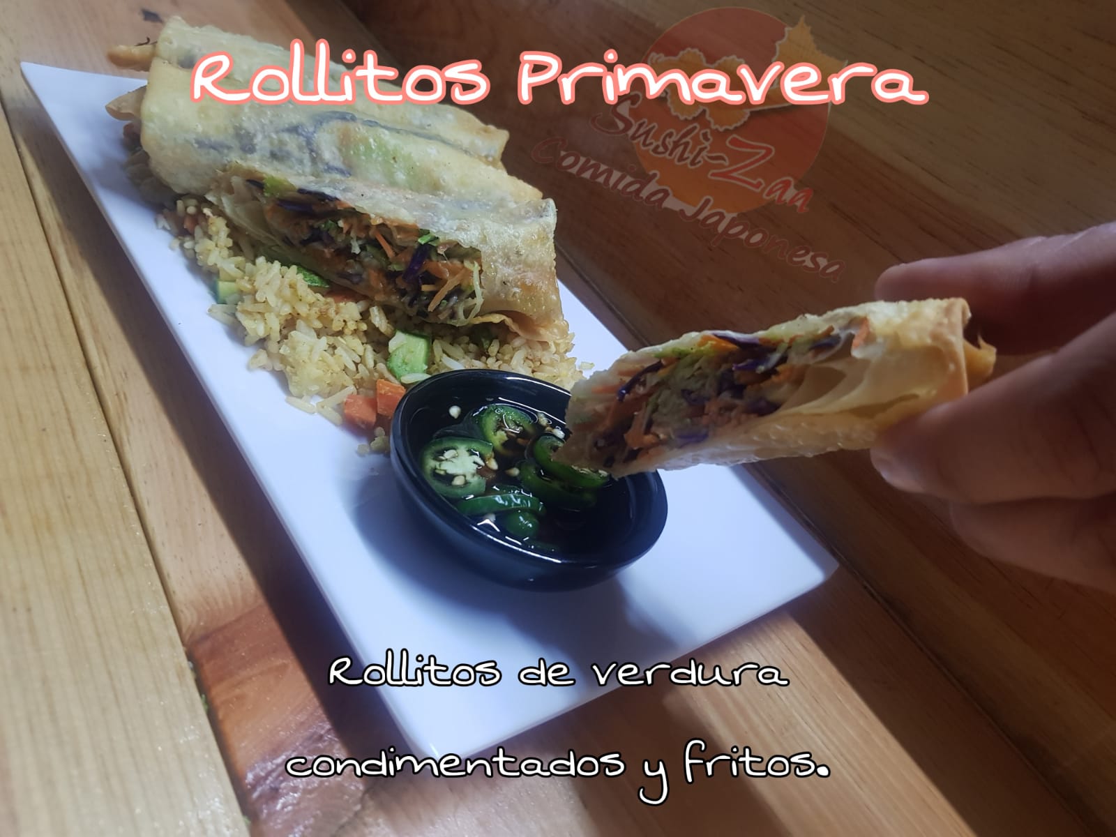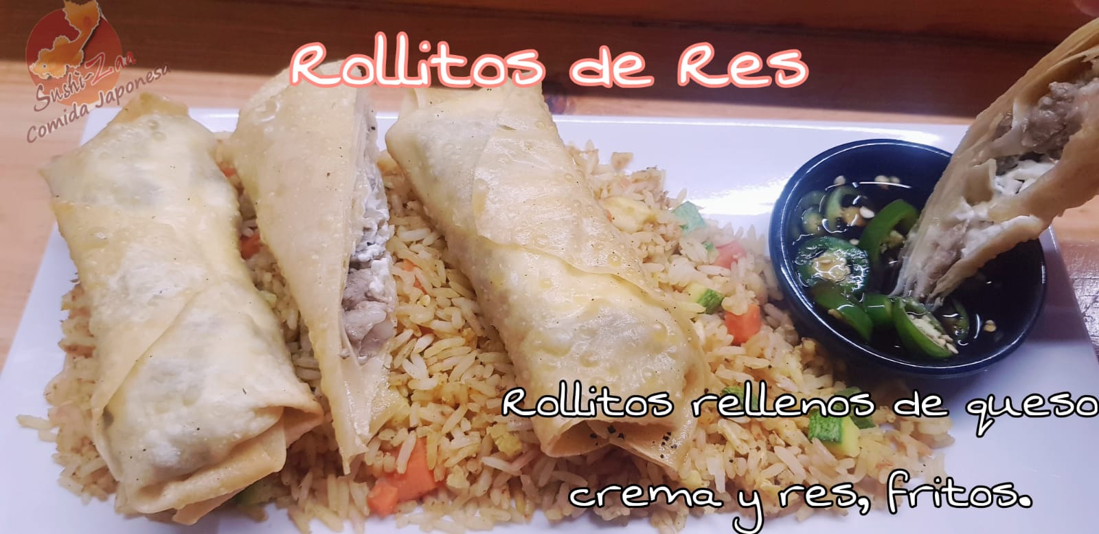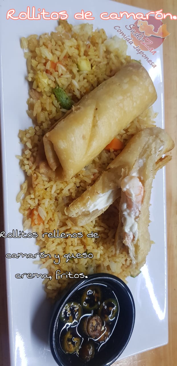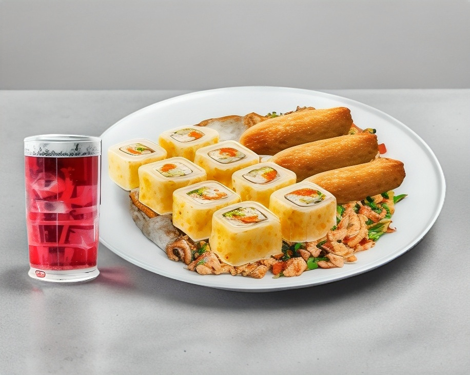 Sushi, Arroz frito, Rollitos primavera y Agua fresca