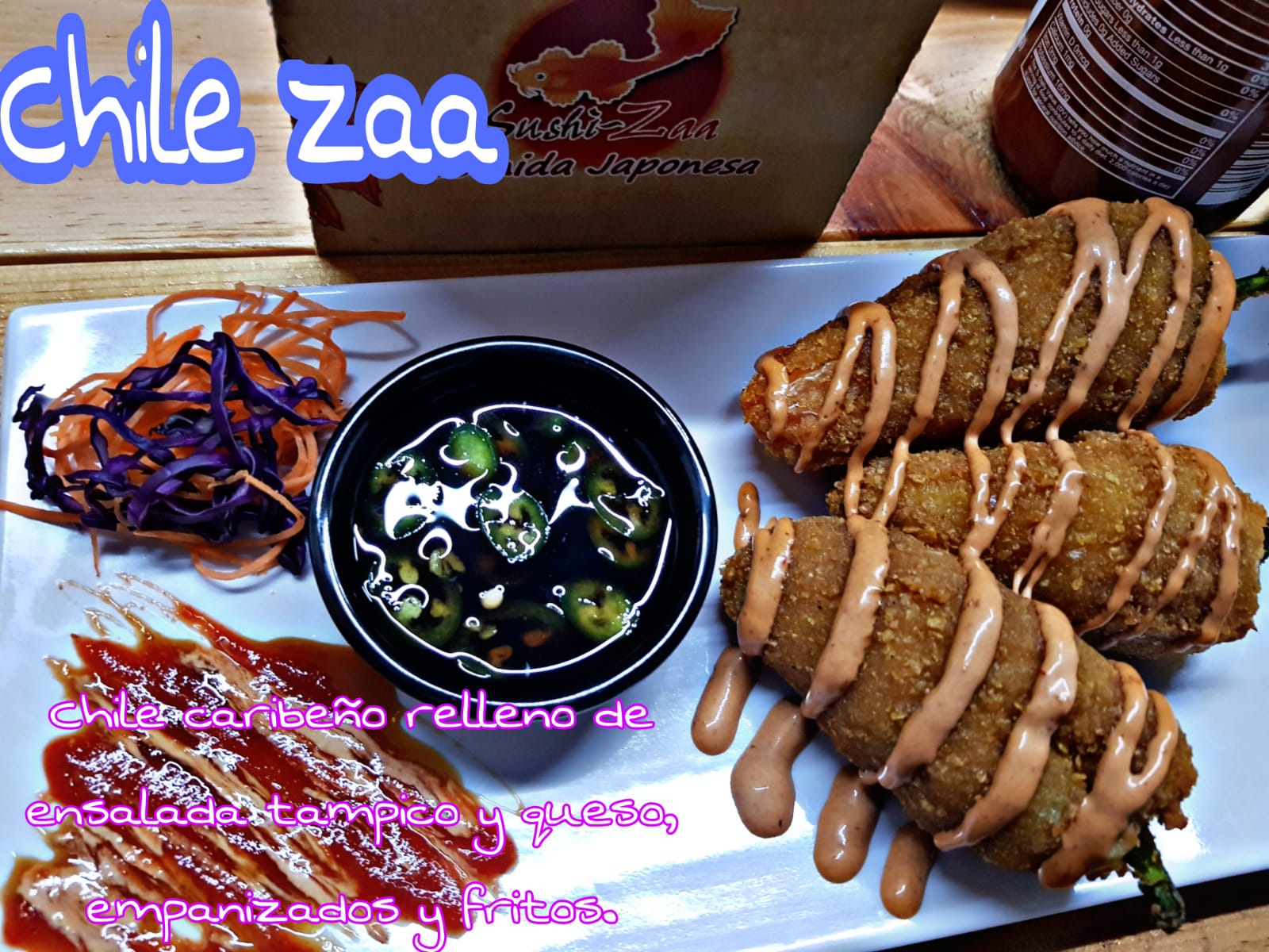 Chile caribeño relleno de tampico y queso, empanizado con aderezo de chipotle.