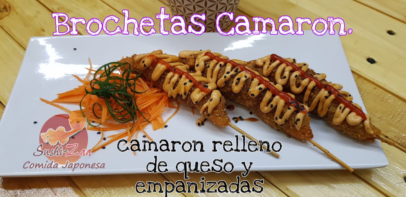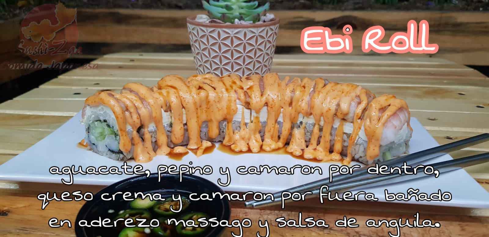 Queso crema por fuera, coronado con tampico, trozos de camaron empanizado y salsa de anguila.