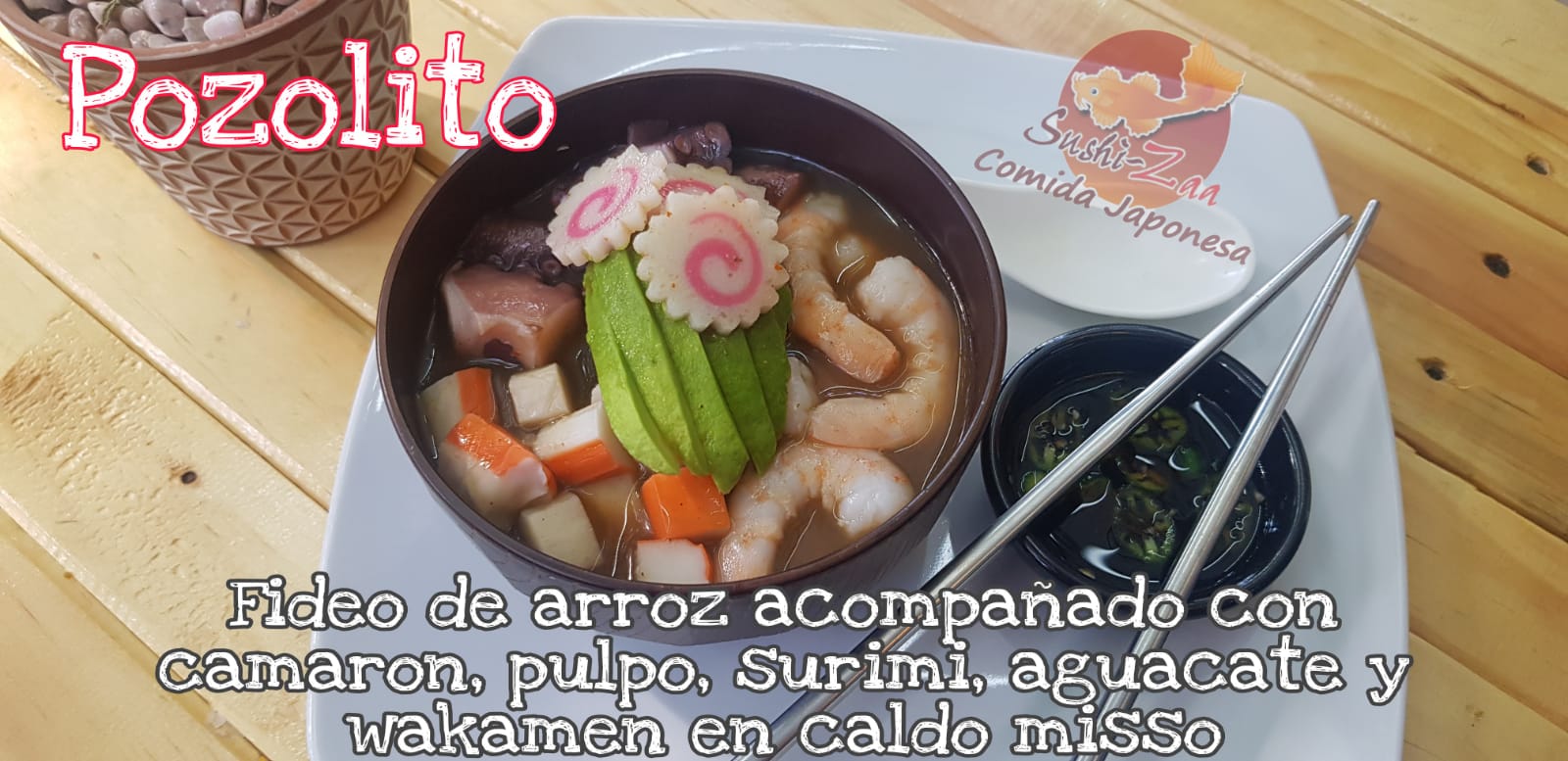 Tallarines de Trigo y Surimi en caldo ramen especial, aguacate y huevo.
