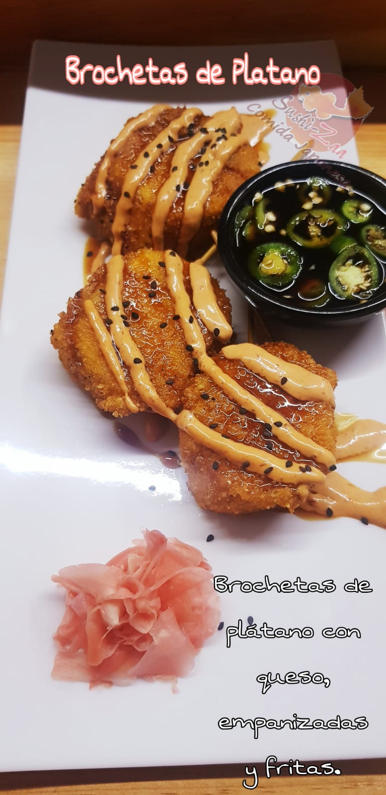 Por dentro pepino, aguacate. Philadelphia, Gouda, Americano y empanizado por fuera con toping de tampico.