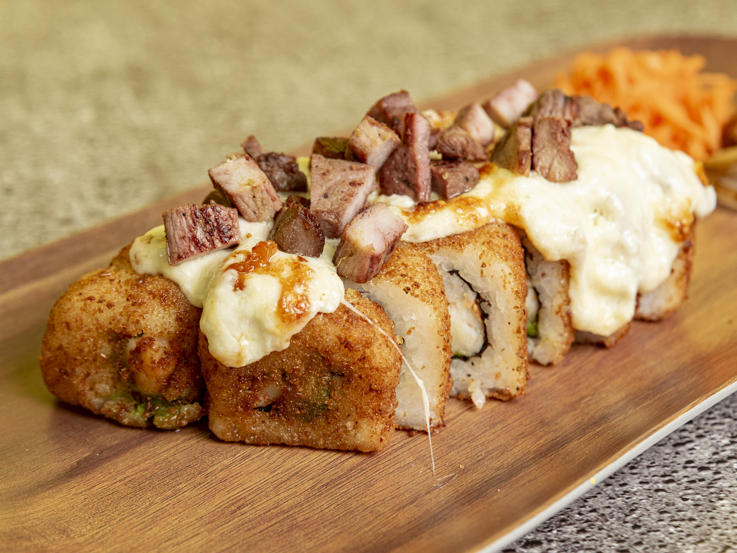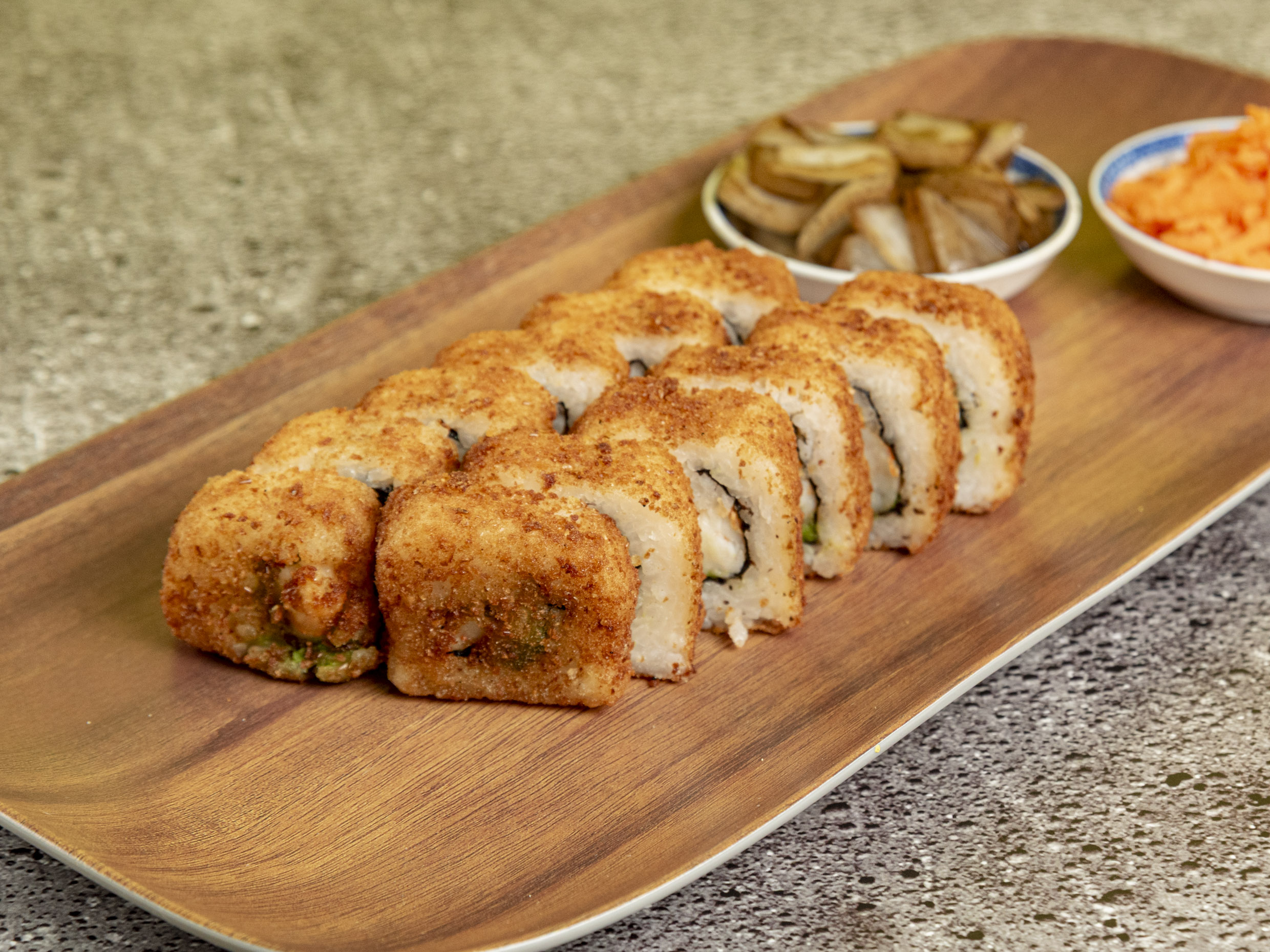 Rollo de camarón, cubierto de philadelphia empanizado