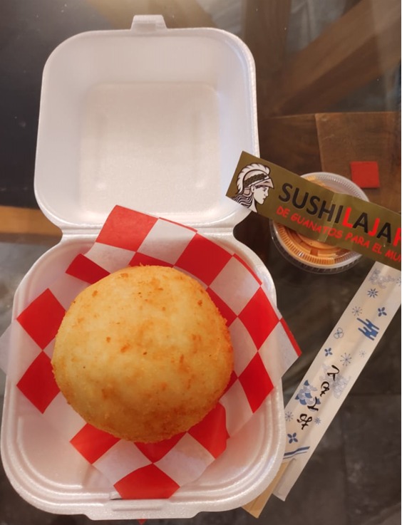 deliciosa bola de arroz empanizada por dentro philadelfia pepino zanahoria aguacate y 1 prote a elegir por fuera queso manchego gratinado