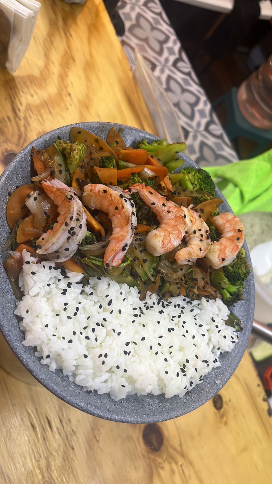 Verduras sazonadas a la plancha, bañadas en salsa teriyaki con proteína de su elección.