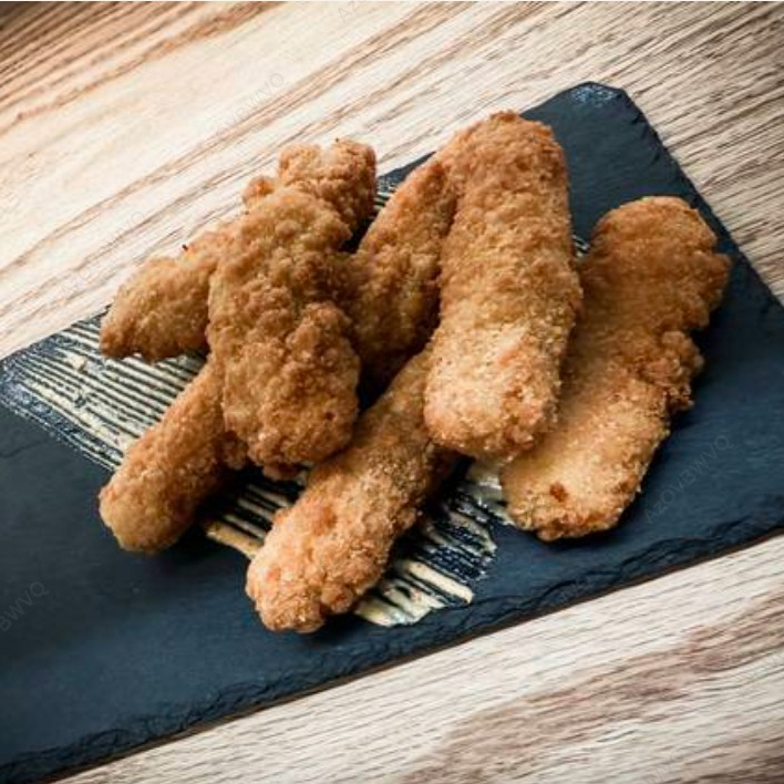 7 Dedos de queso recién fundido empanizados.