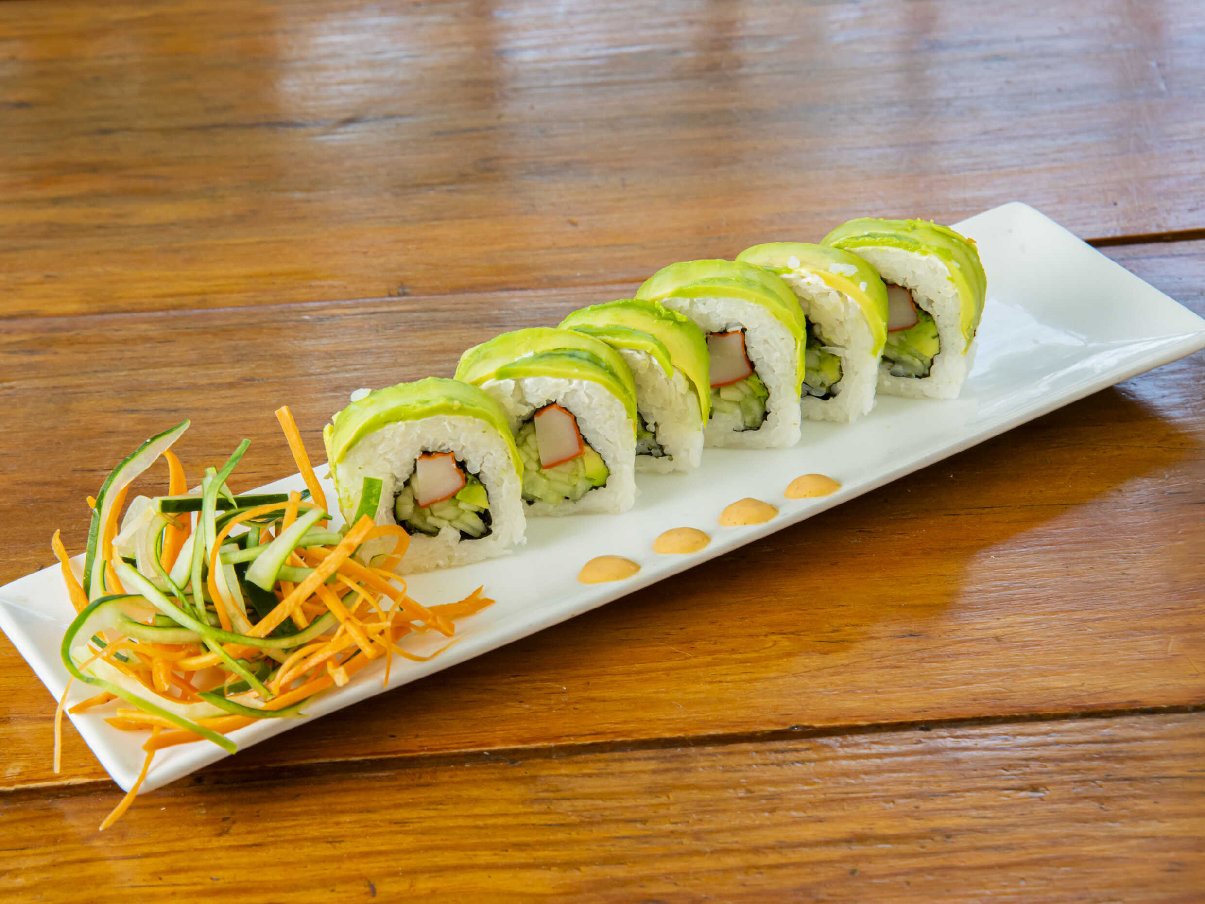 12 pzas Llevan pepino, filadelfia, surimi y aguacate.