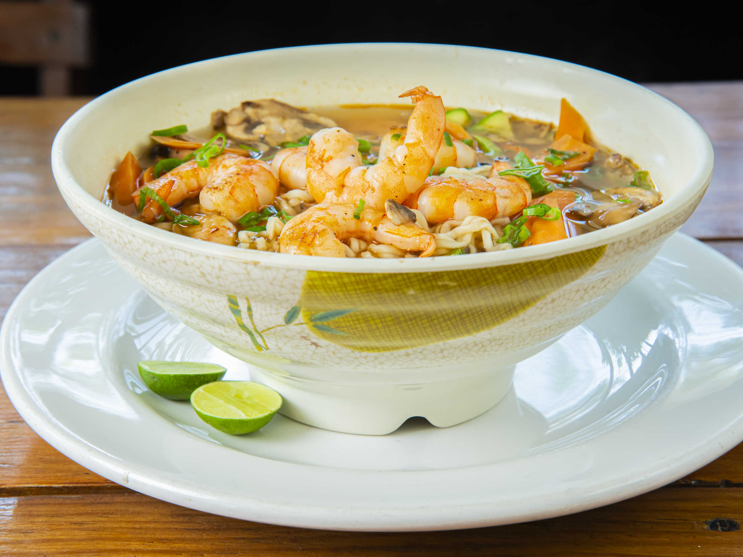 1 Sushi empanizado, 2 rollos primavera, arroz frito, 1 sopa ramen de res.