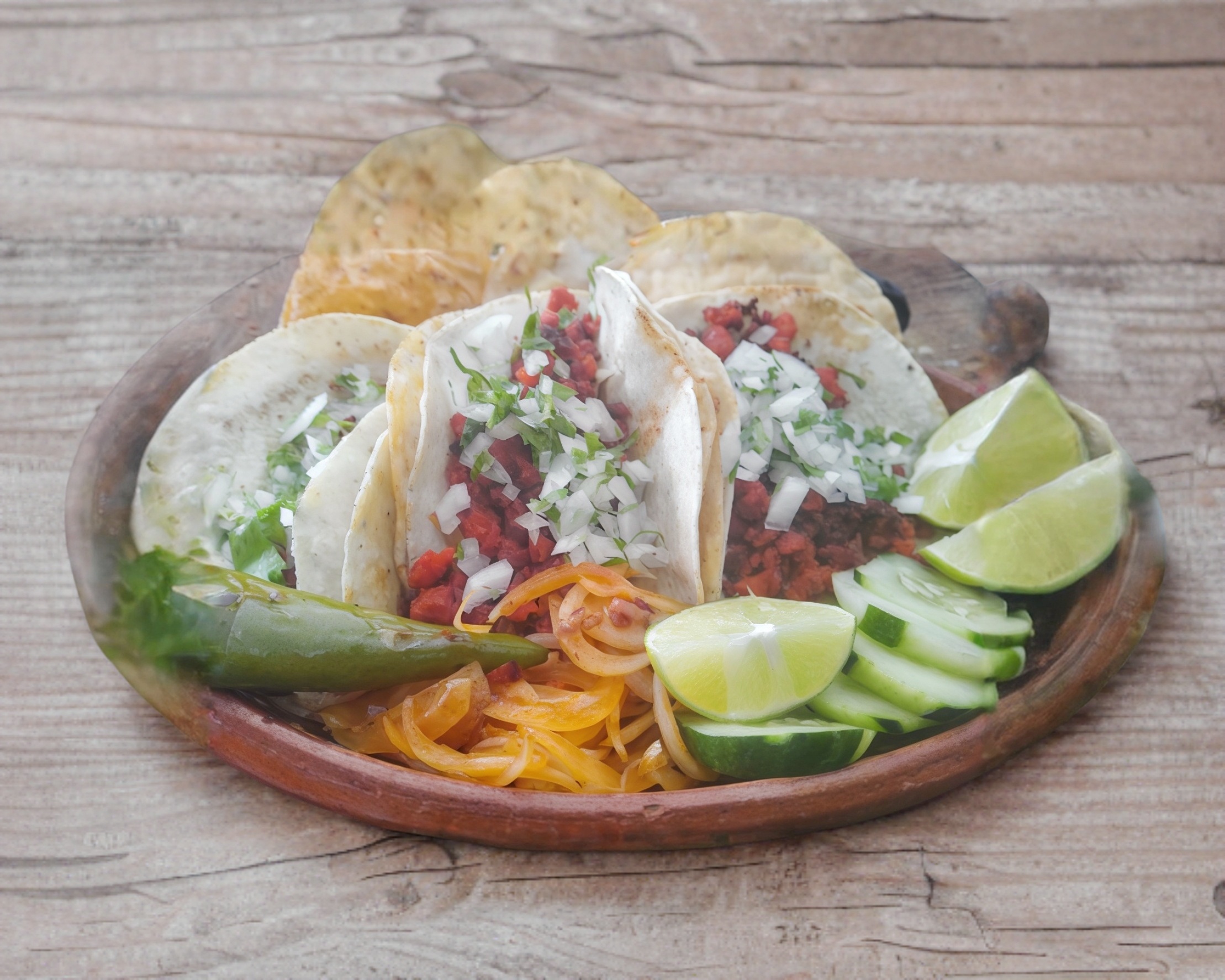 Chorizo Picadito para Taquear; incluye: Tortillas, verdura, salsas y limones