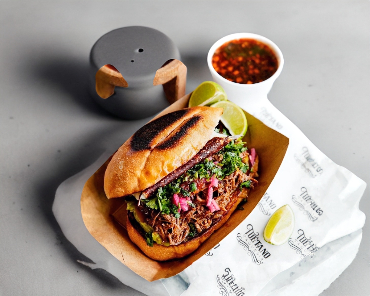 RICO LONCHE DE BIRRIA ACOMPAÑADO CON CEBOLLA PEPINOS LIMON PICANTE