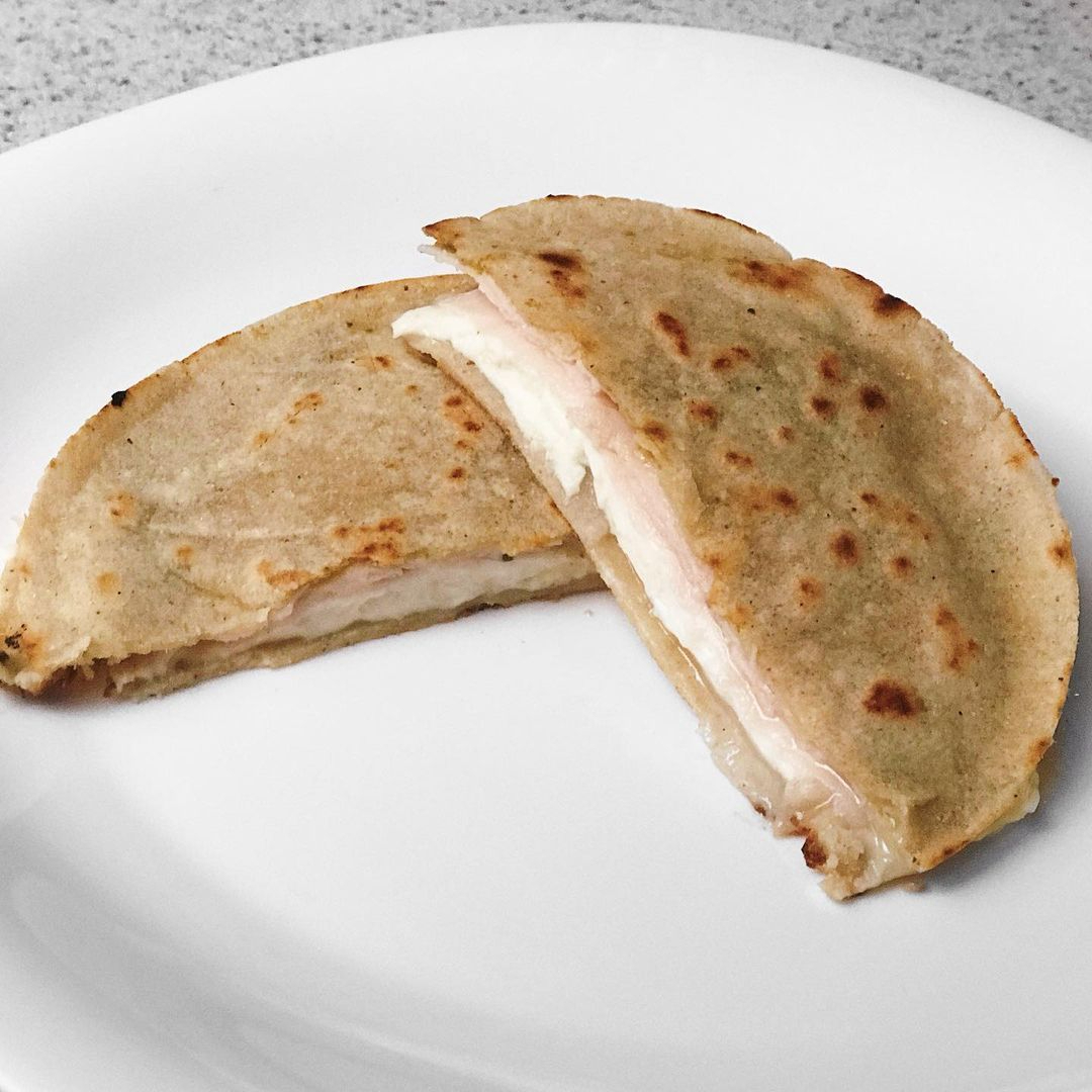 RICA QUESADILLA CON QUESO MOZARELLA ACOMPAÑADO CON CEBOLLA FRIJOLES PEPINOS LIMON PICANTE