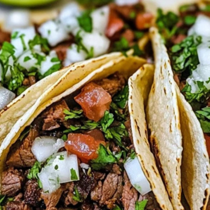 rico taco de asada de res acompañado de picante cebolla limon pepinos