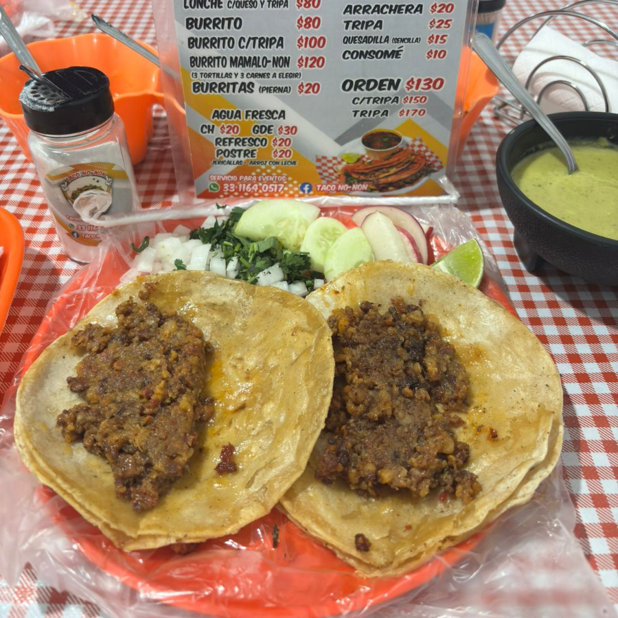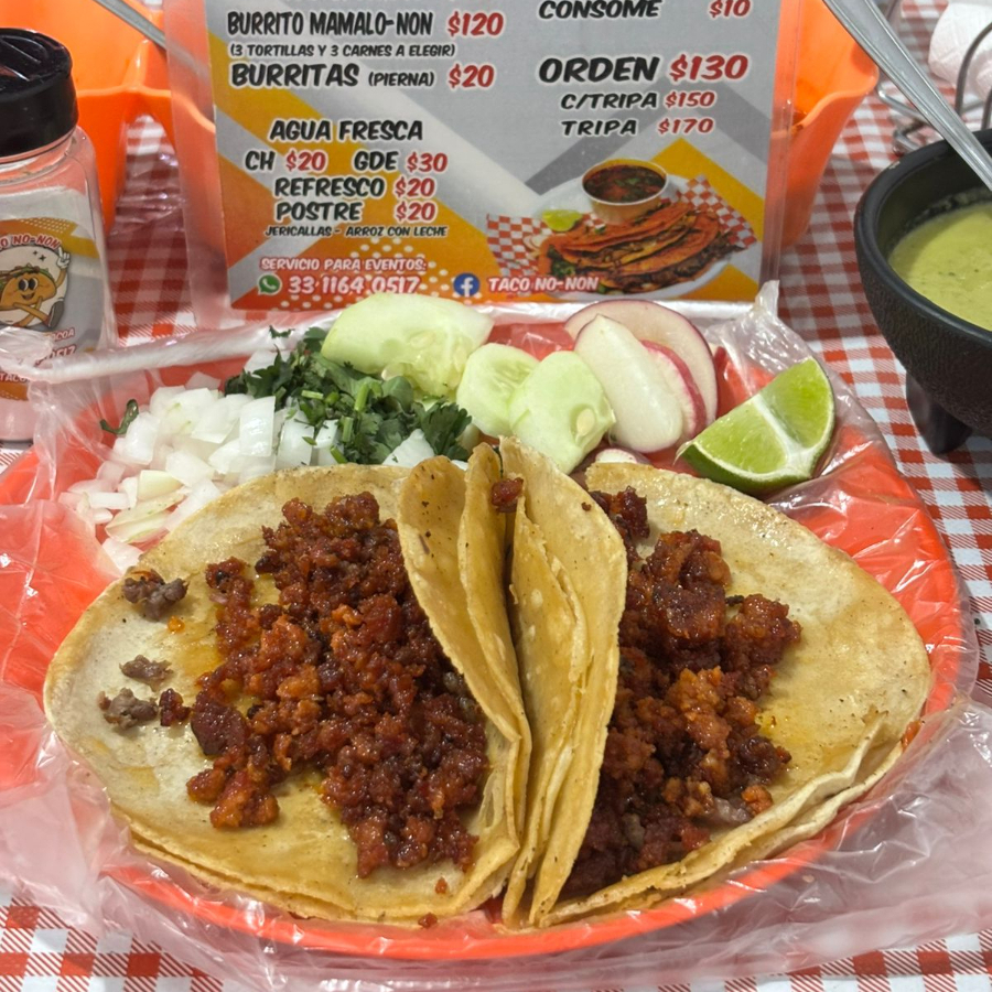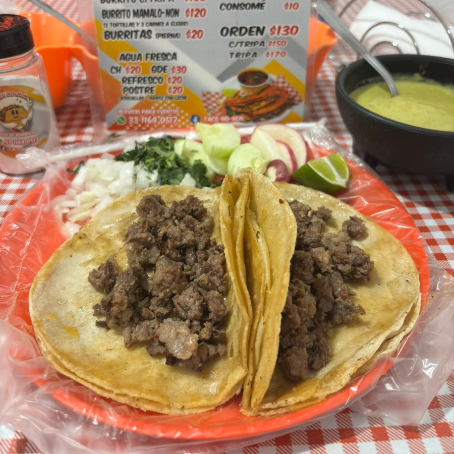 Taco de bistec preparado con condimentos especiales puedes acompañarlo con frijoles de la olla todos nuestros tacos son de tortilla grande