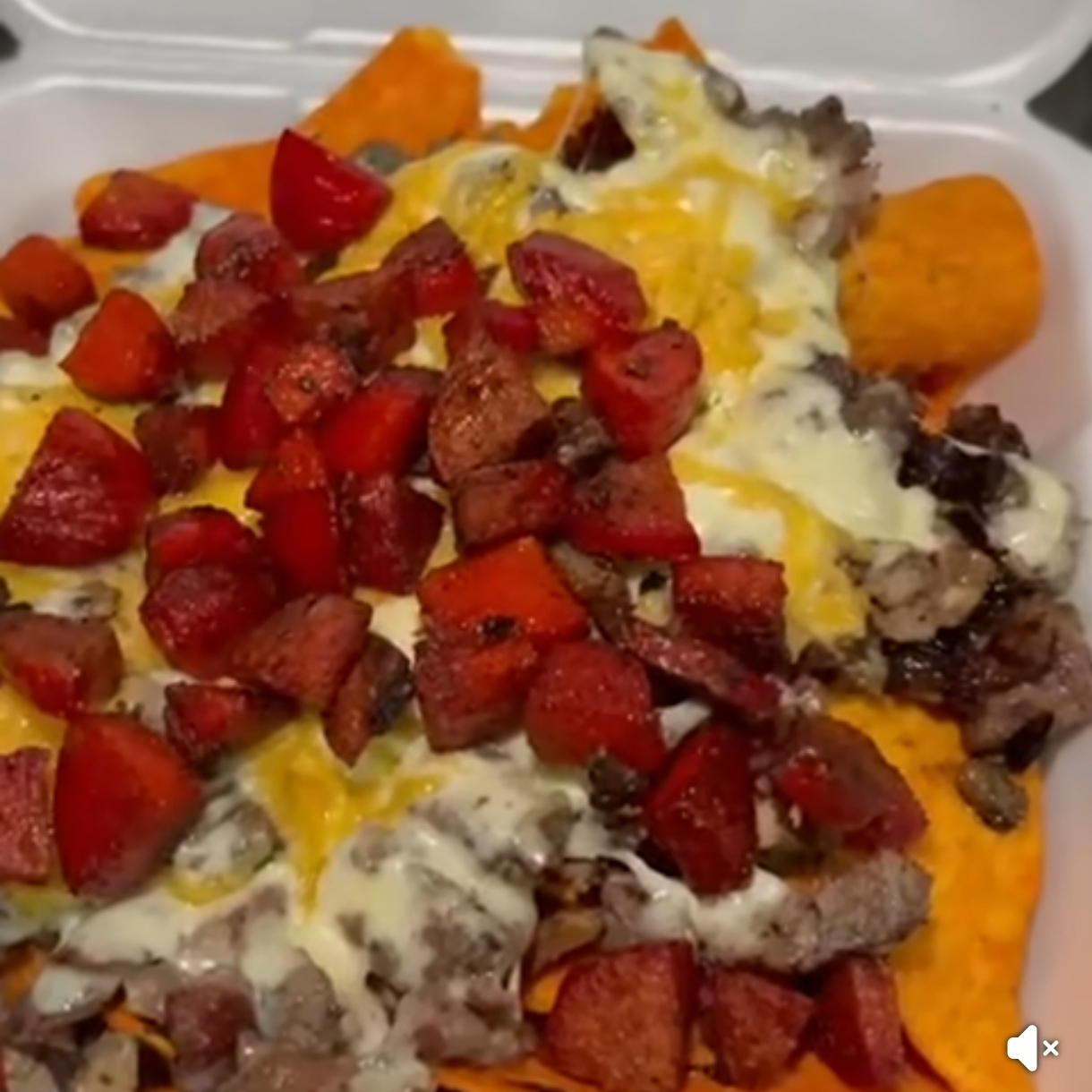 Delicioso Snack de Doritos con salsa de queso, carne a tu eleción, cebolla y cilantro picaditos, aparte salsita verde y roja
