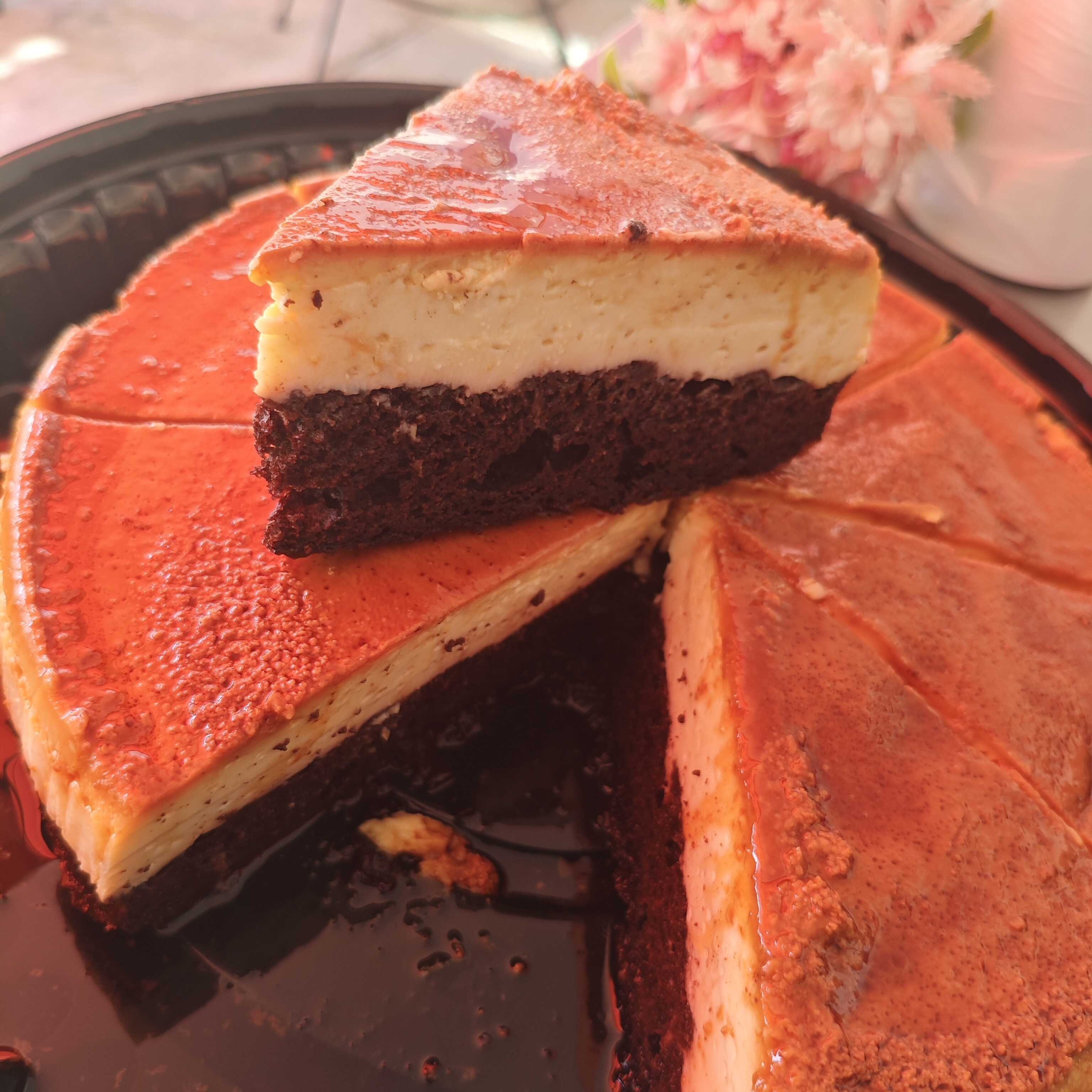 Deliciosa rebanada del chocoflan del Costco
