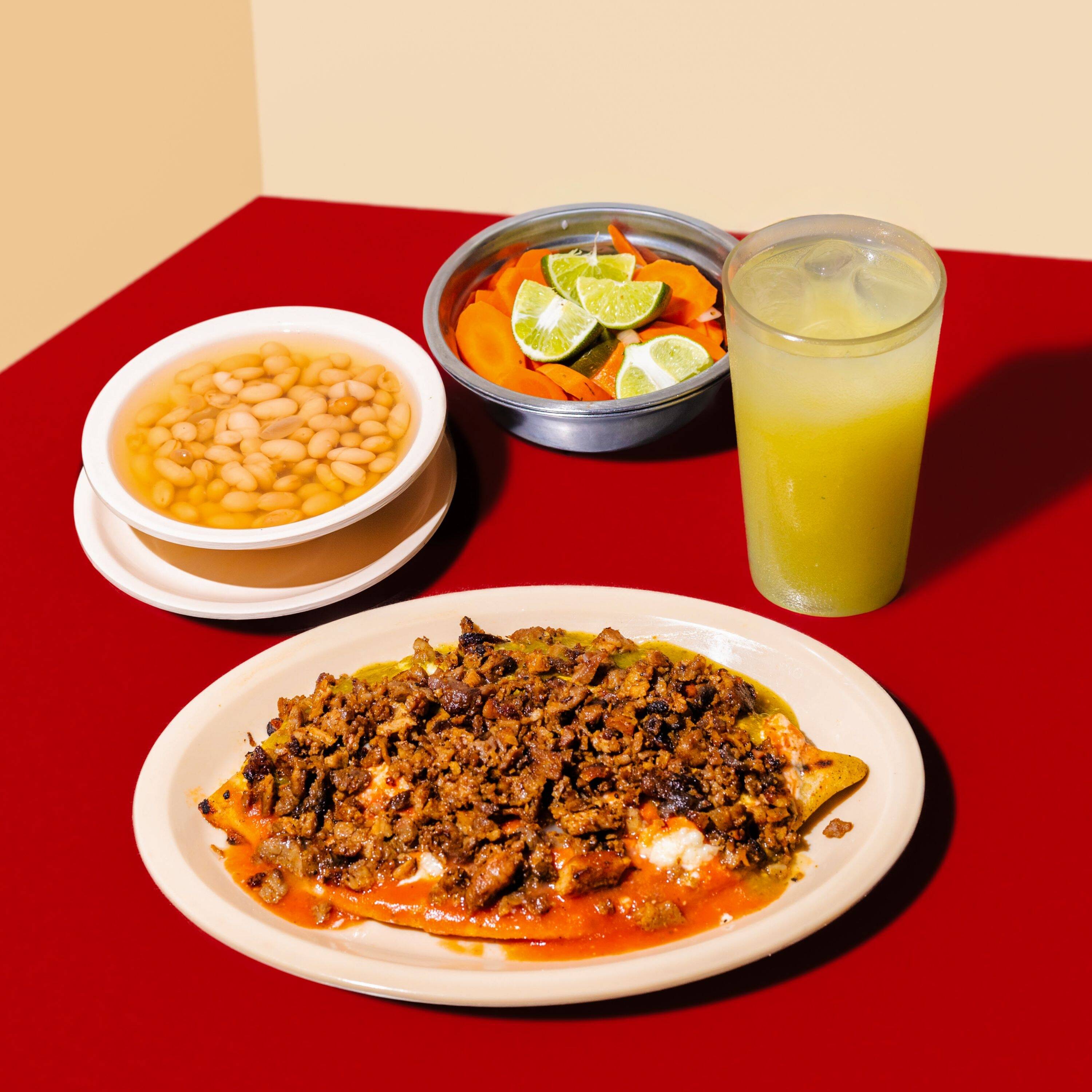 3 sopes al pastor y 1 agua de horchata gratis