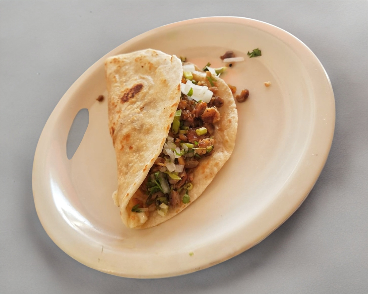 Quesadilla de maíz con carne.