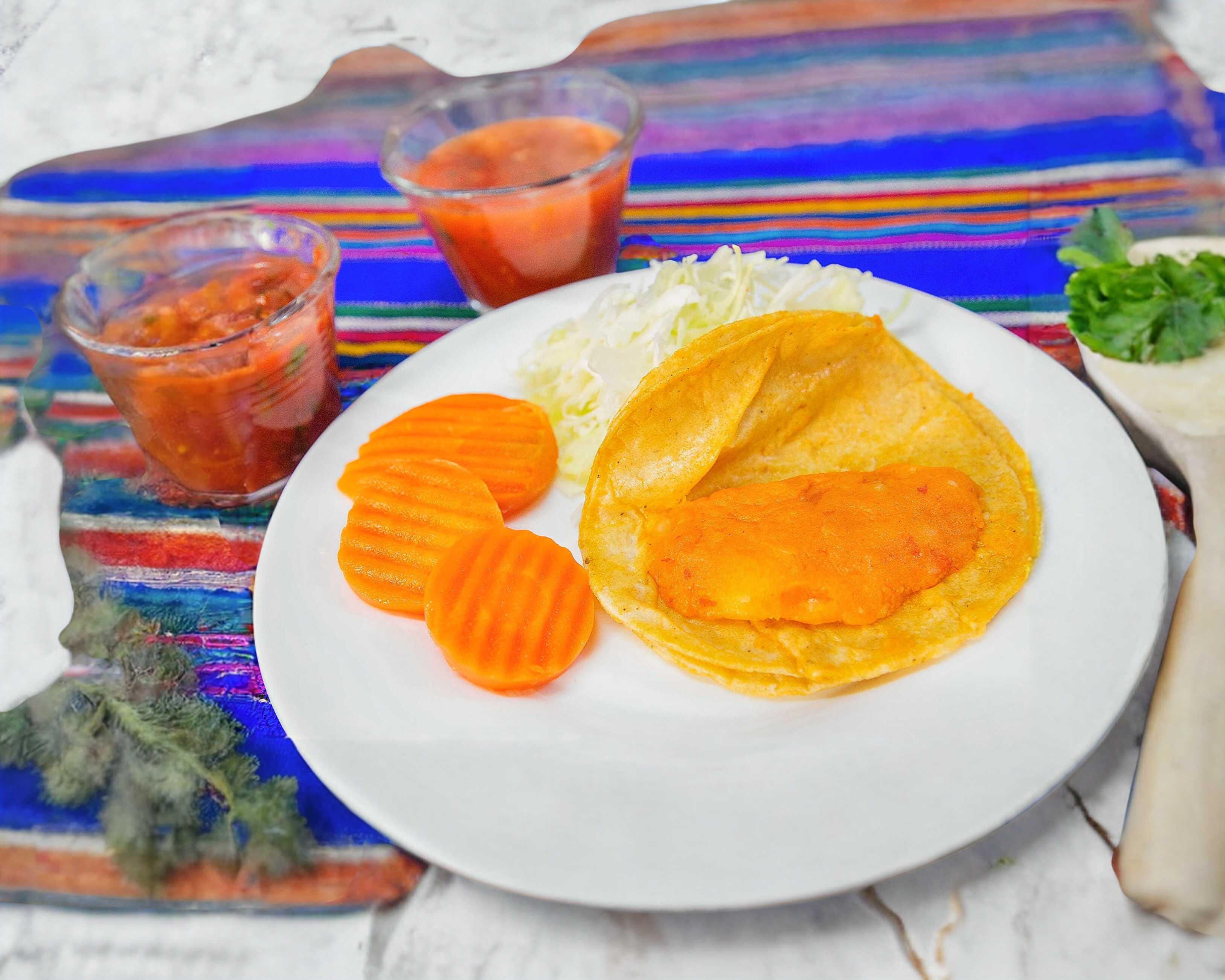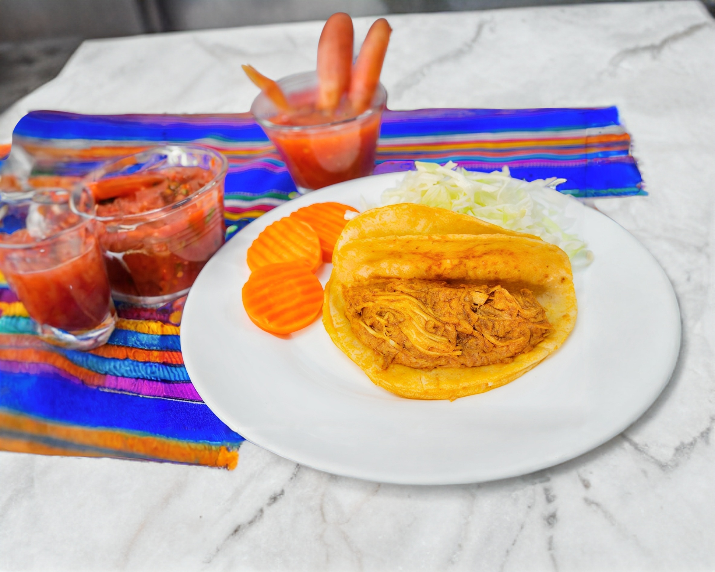 Acompañado con salsa, col, chile martajado y zanahoria.