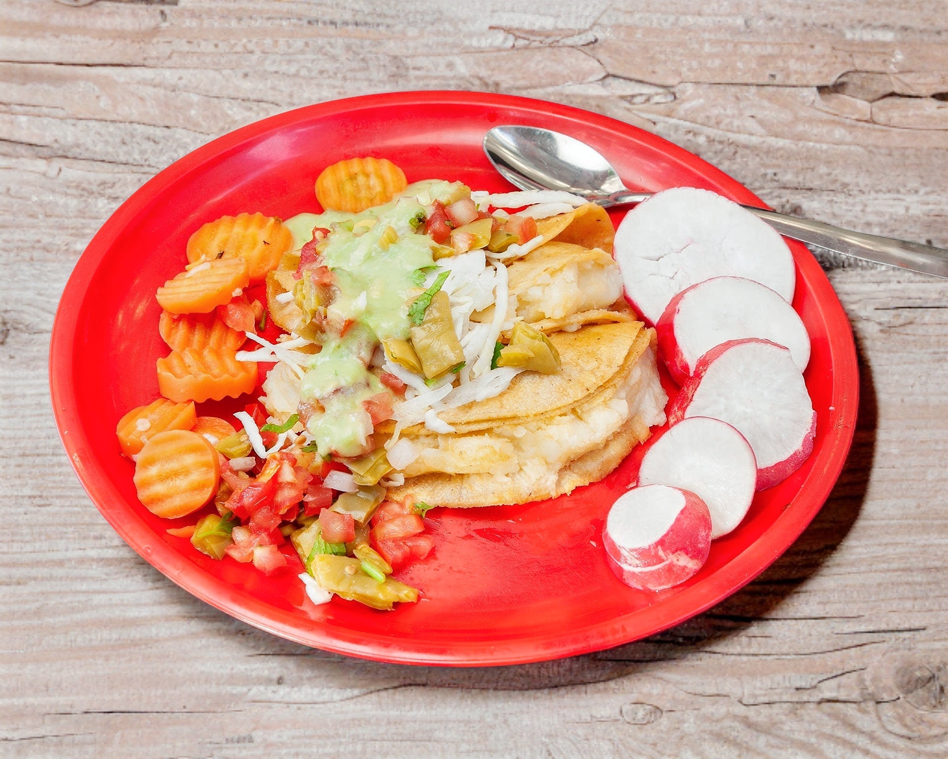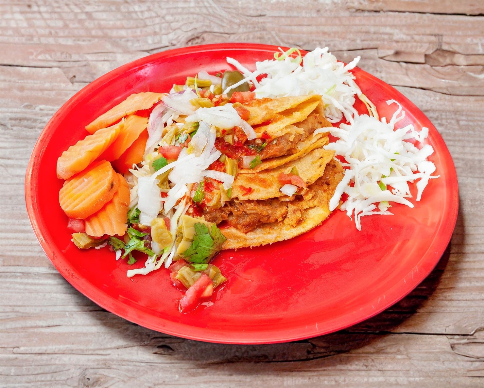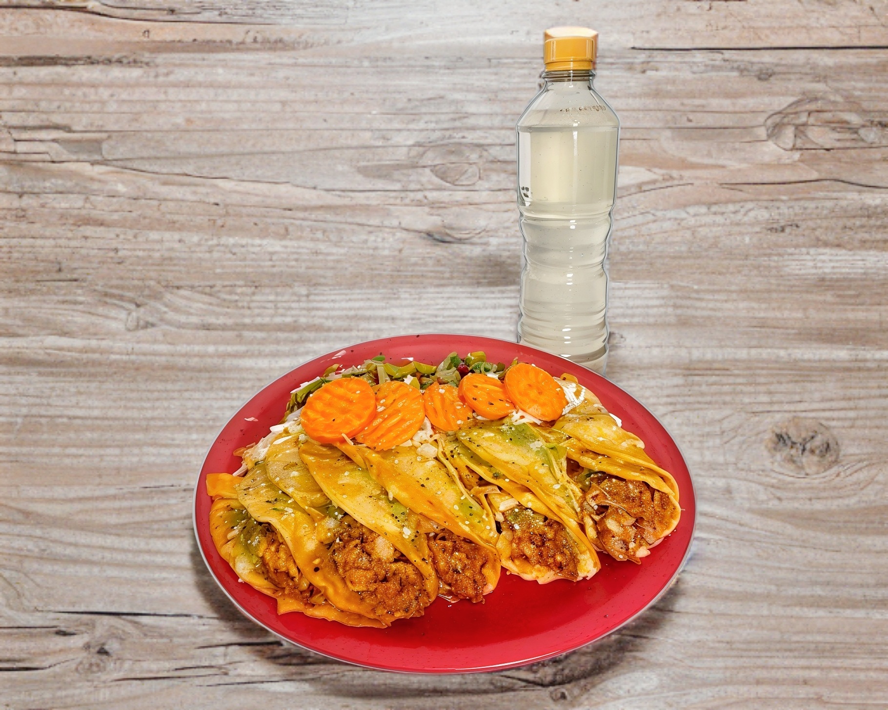 Incluye 2 tacos de deshebrada y 2 tacos de chicharrón