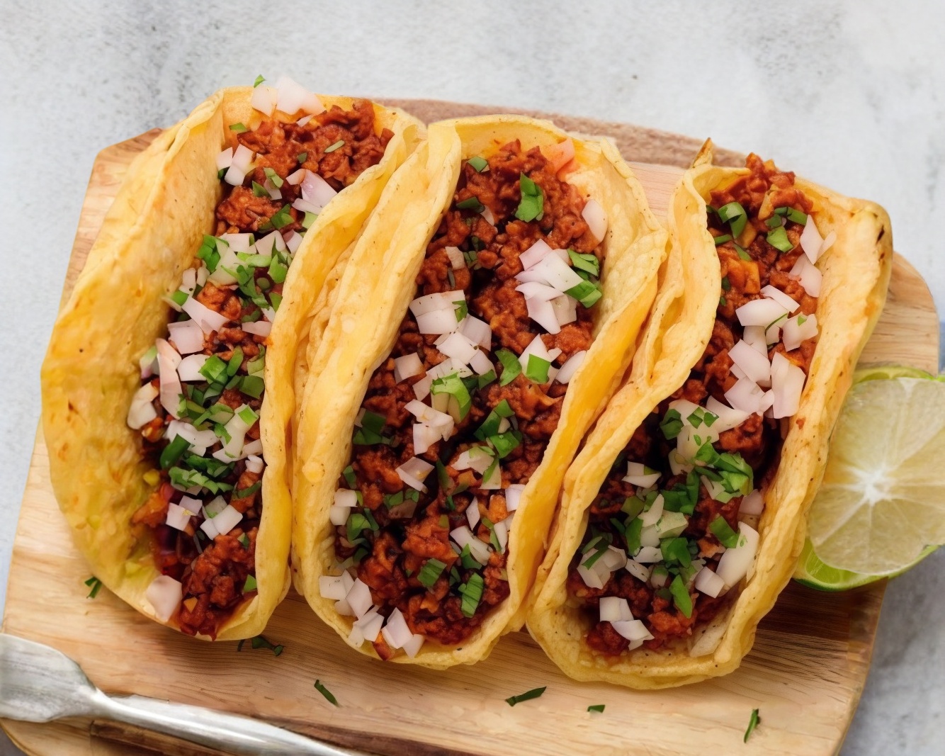 Tortilla doradita de maíz con carne de res y queso derretido.