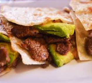 Tortilla de harina con bistec y queso.