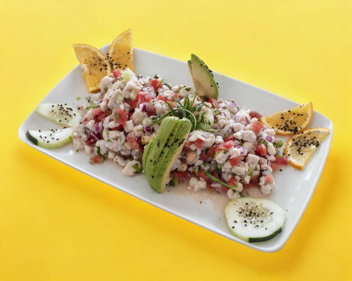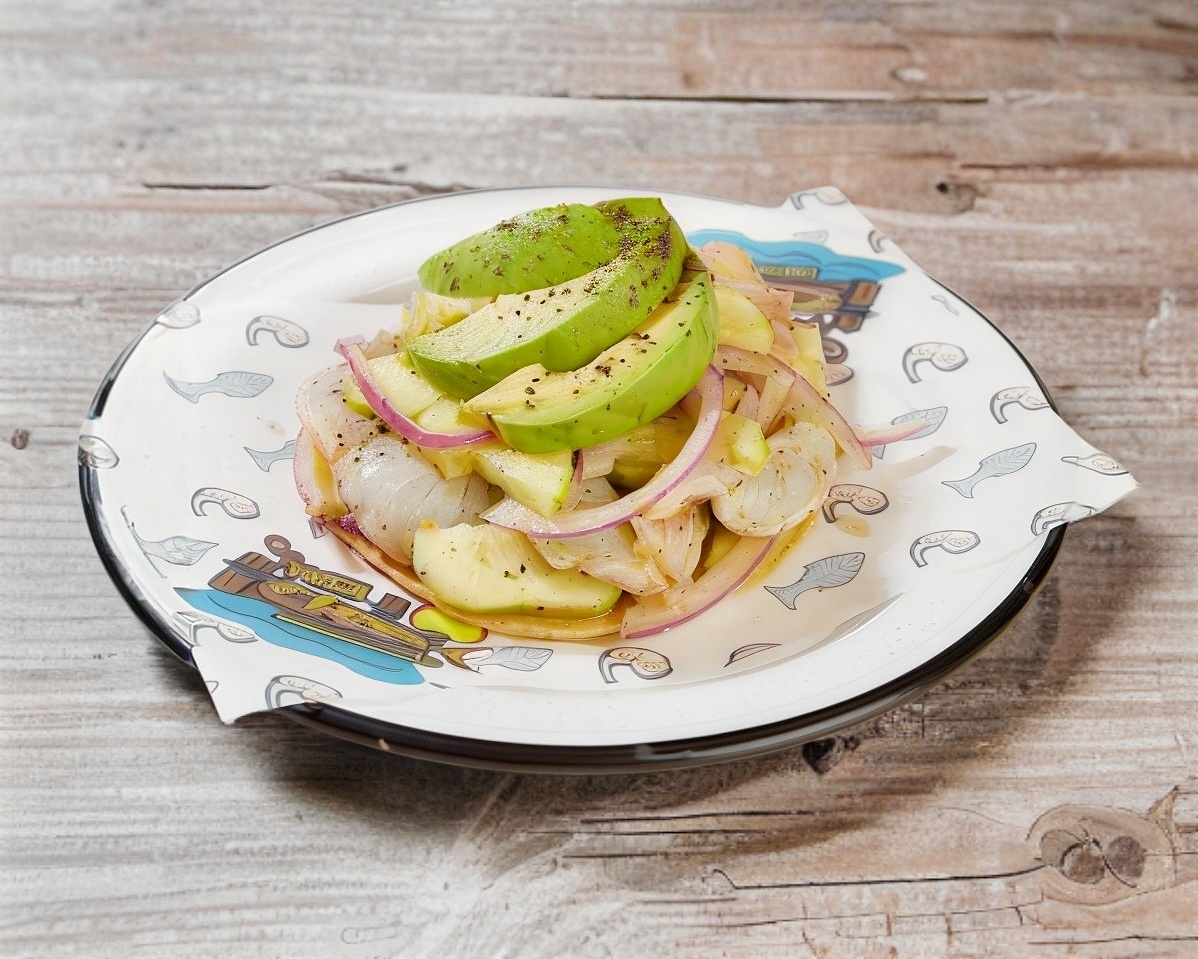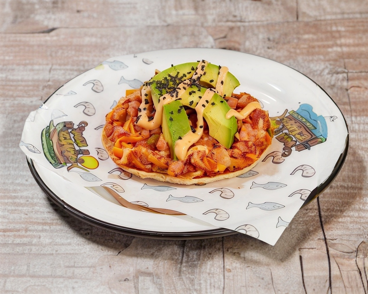 Atún fresco, pina y aguacate aderezado con salsa especial de soya.