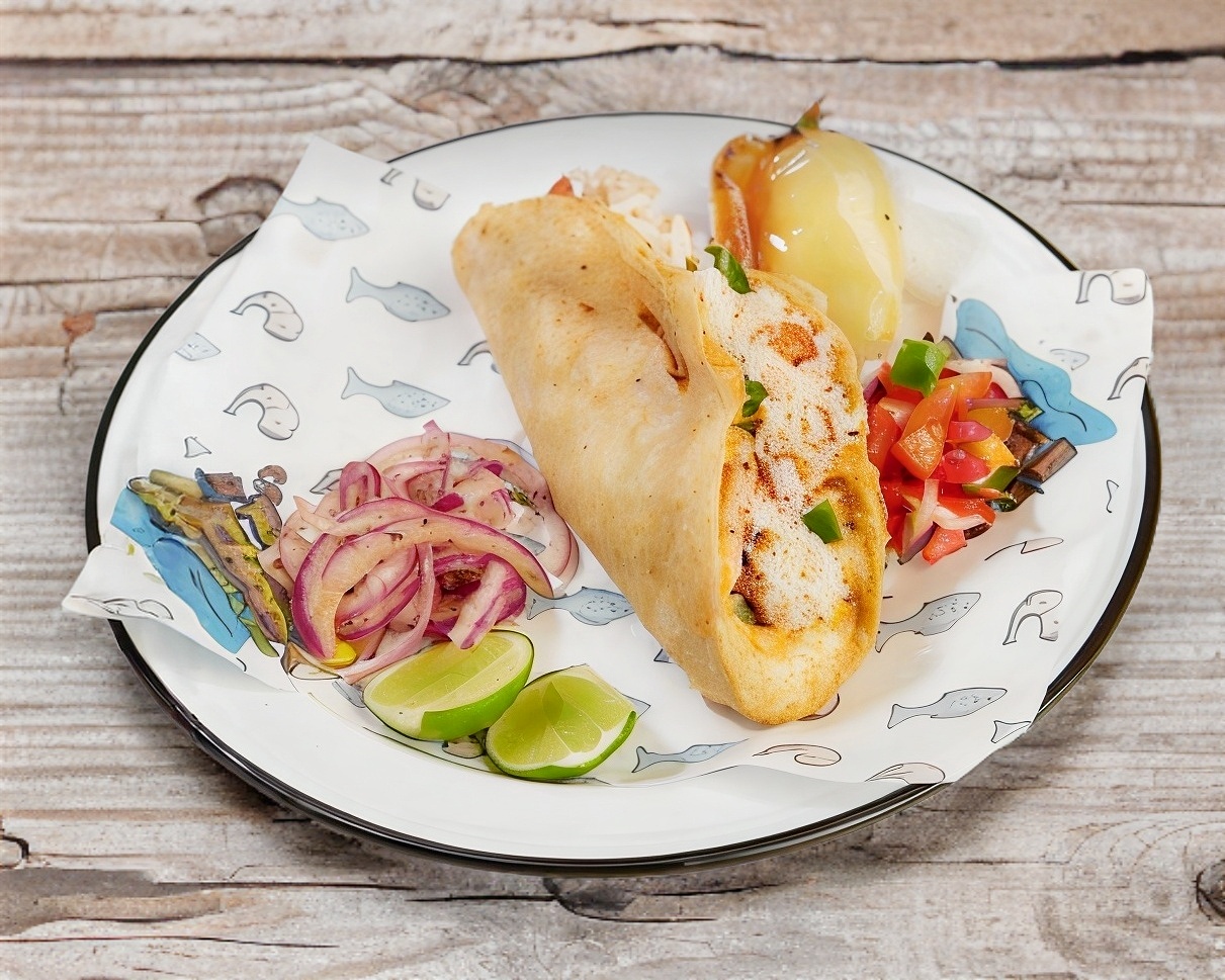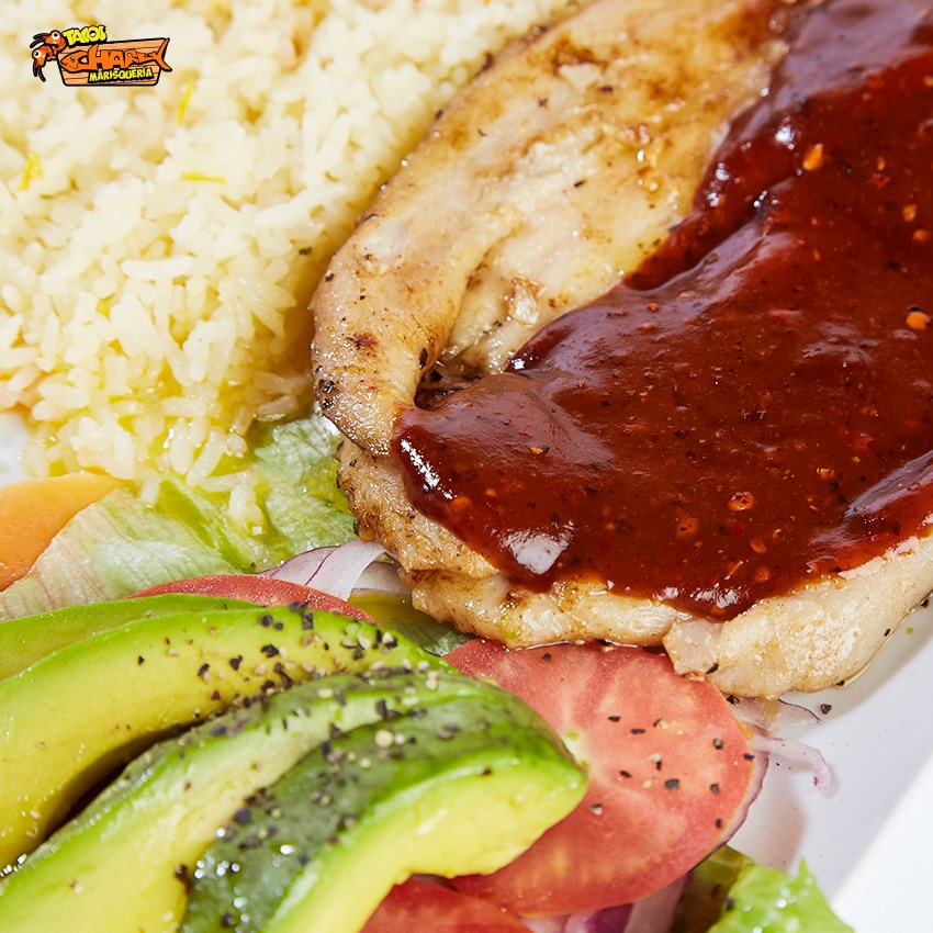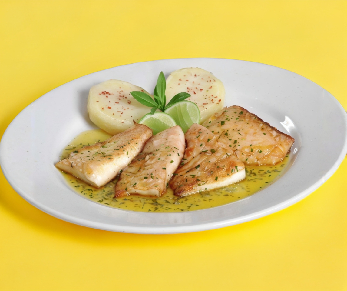 220 gr. de filete de pescado acompañado de una porción de arroz y verduras.
