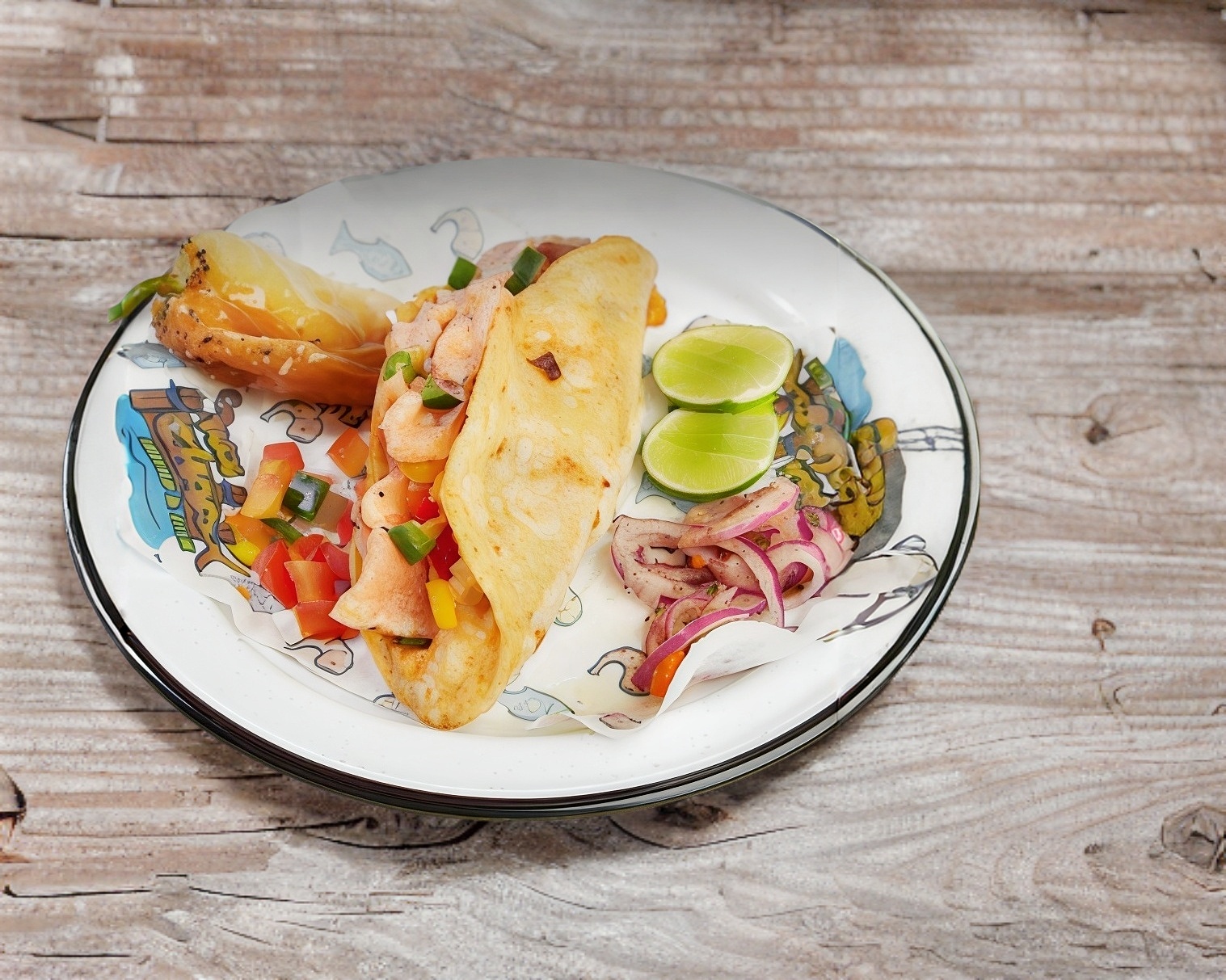 200 gr. de filete de pescado acompañado de una porción de arroz y verduras.