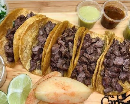 Rica orden de 5 tacos de bistec en tortilla taquera del #10.
