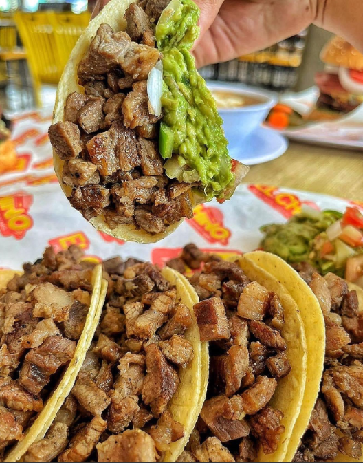Delicioso taco de chorizo en tortilla taquera del número 10.